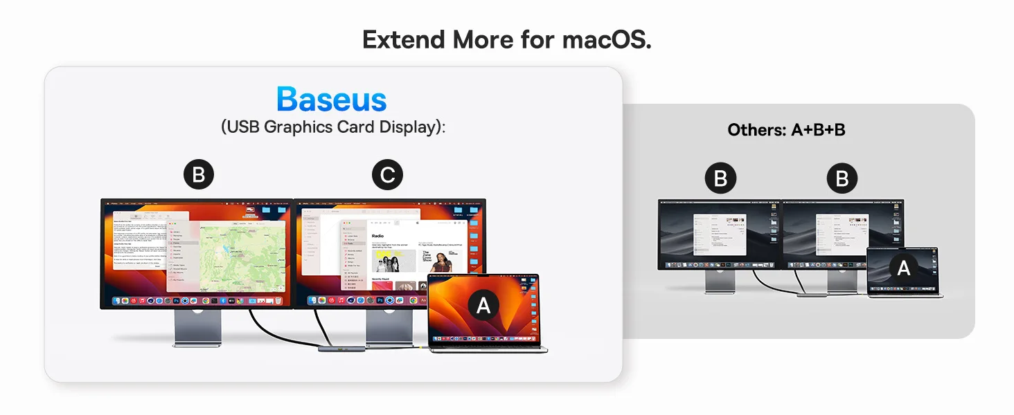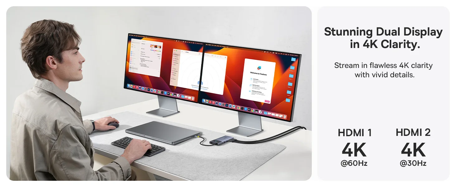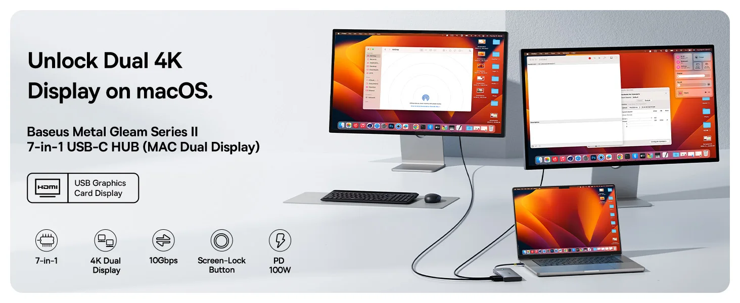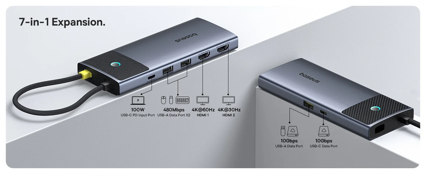 【Limited Offer】Baseus USB C HUB 7-in-1 Type-C to HDMI 4K 60Hz 30Hz MST Dual Display for macOS Win USB 3.2 Adapter PD 100W HUB