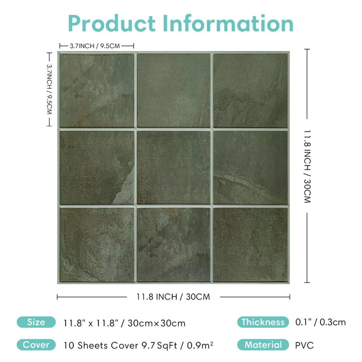 Safe & Lightweight & Flexible: Our 3D peel and stick tiles are made of premium vinyl pvc materials, they are lightweight and flexible that super esay to install, high quality for prolonged use in interior wall decoration. The green peel and stick backsplash tiles are eco-friendly, provide a safe environment for the olds, children and pets. Each 3D peel and stick wall tile is 11.8”X11.8”per sheet.