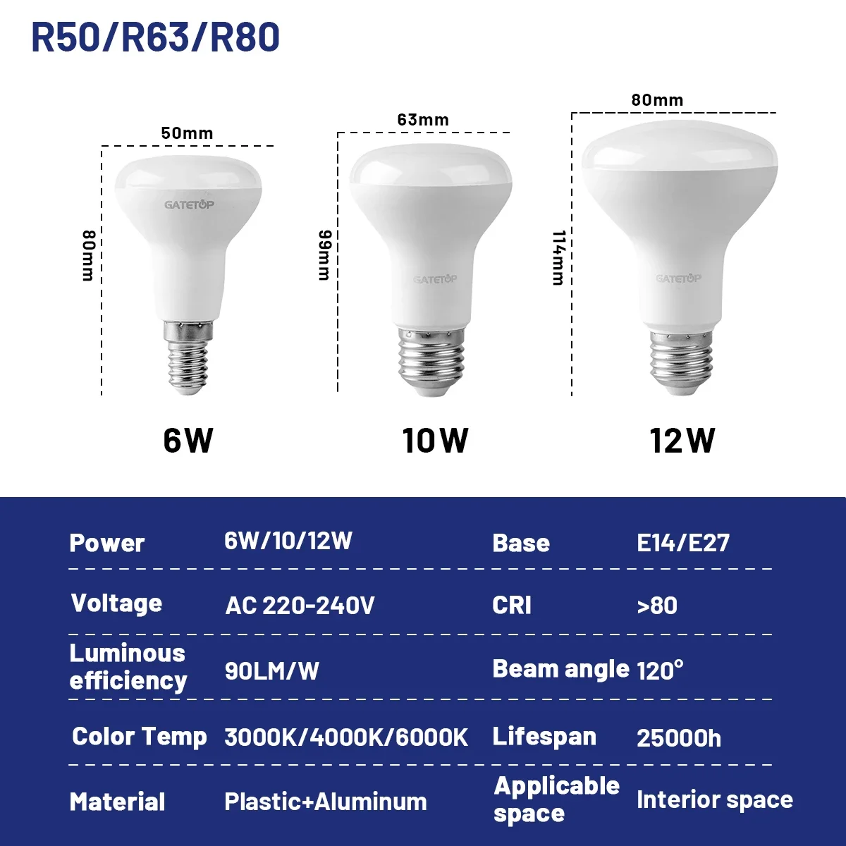 1-20Pcs LED Bath Bulb Lamp E27 E14 Mushroom Bulb R50 R63 R80 220V 6W 10W 12W Non Strobe Warm Cold Light In Line with ERP2.0