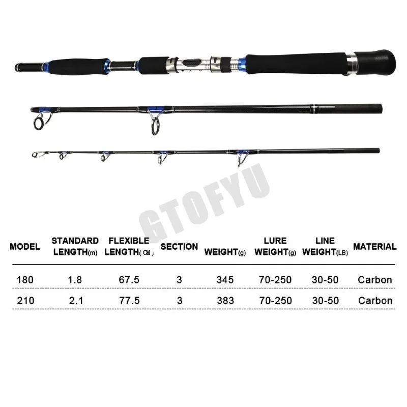 Lure:70-250g,Length:1.8M-2.1M ,Test:20kg above