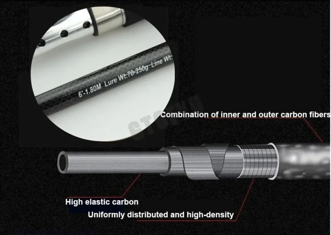 1.This fishing rod is made from carbon fiber, strong and durable.
