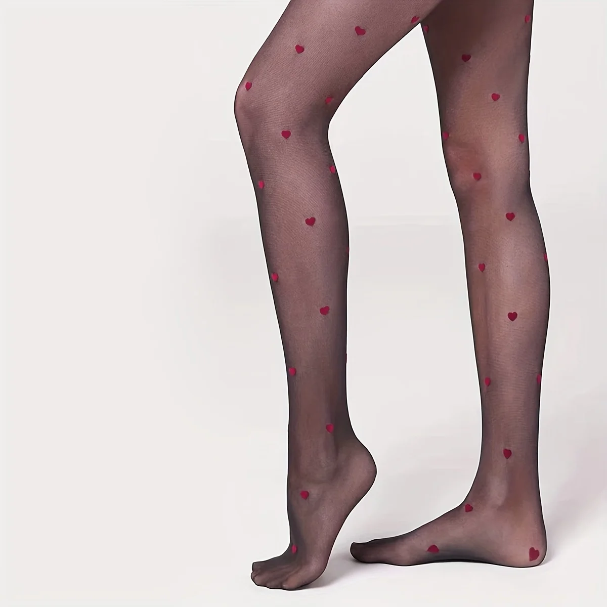 1 Pair Women’s Love Heart Pattern Sheer Tights-Hollow Out High Waist Mesh Pantyhose, Fashion-Forward Design for Valentine’s Day