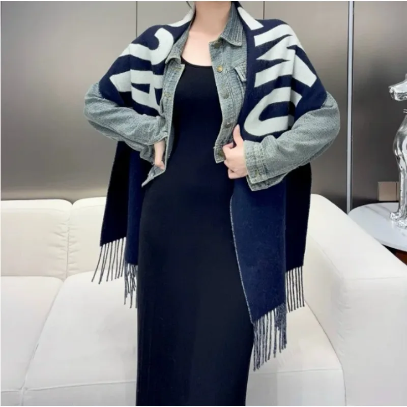 2025SS 100% laine écharpe pour femmes marque de luxe hiver épais chaud cou foulards monogramme haute qualité dames mode cachemire châle
