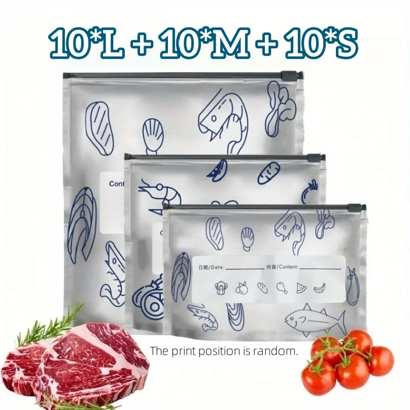 10pcs Aluminum Foil Storage Bags Freezer Sealed Organizers Food Packaging Reusable Pantry Odor-Proof Bag Kitchen Essential
