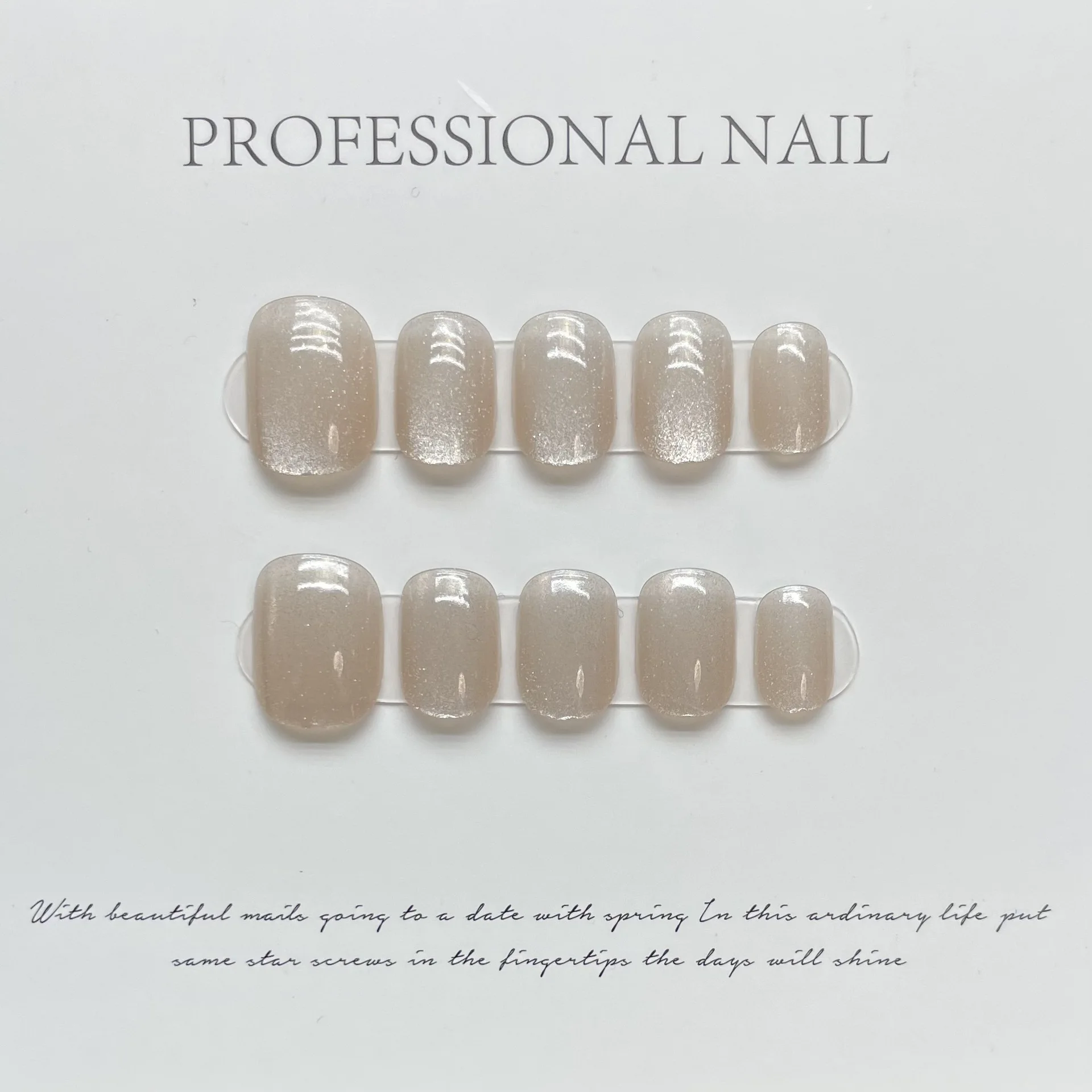 10pcs Pink Cat Eye Handmade Press on Nails Simple Fake Nails False Nail Artificial Nail Накладные Ногти Uñas Postizas Mujer 네일팁