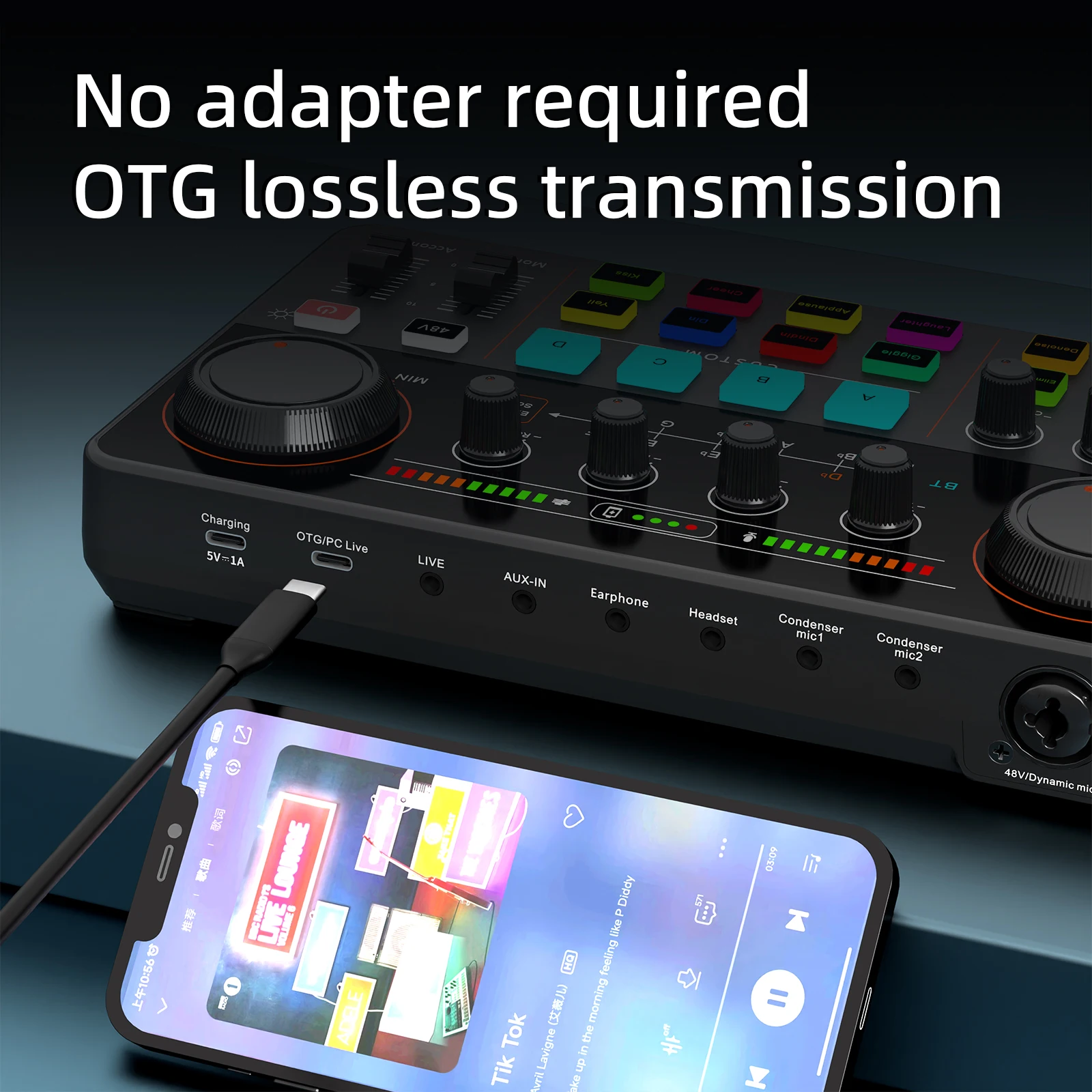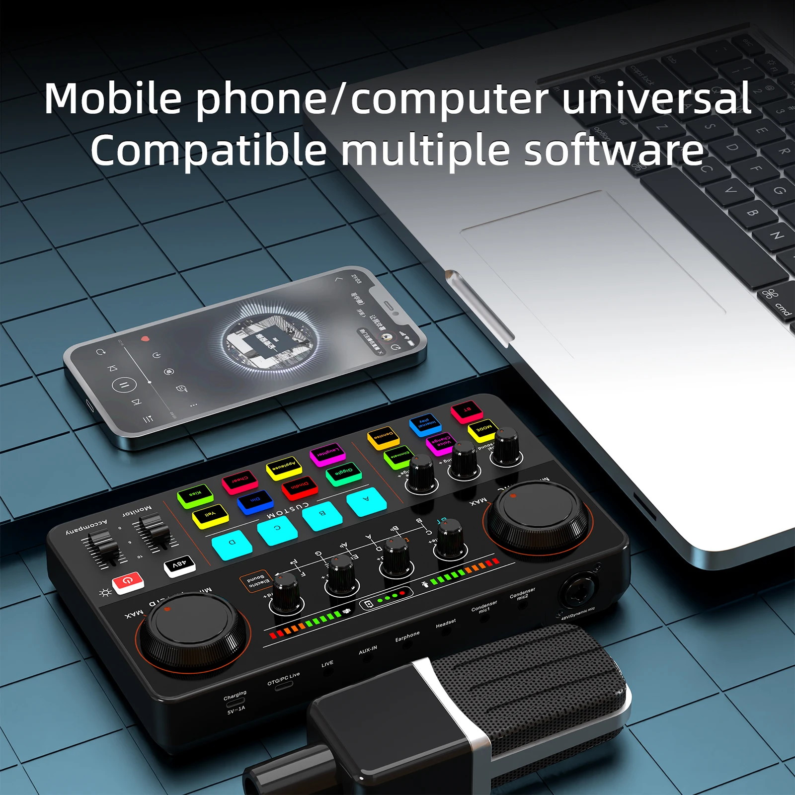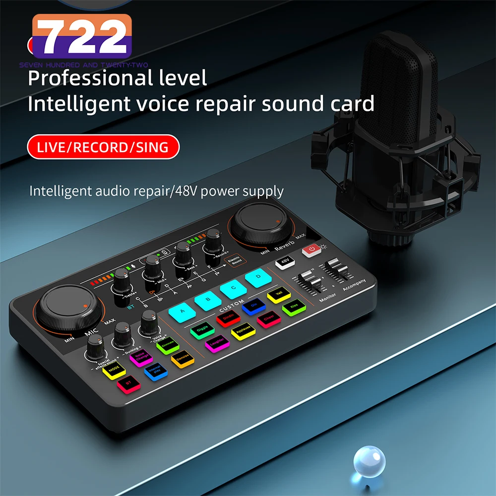 12 Electronic Tone Sound Card Audio 48V Power Supply for Live Streaming Recording Interface Podcast Studio For Youtube PCPhone