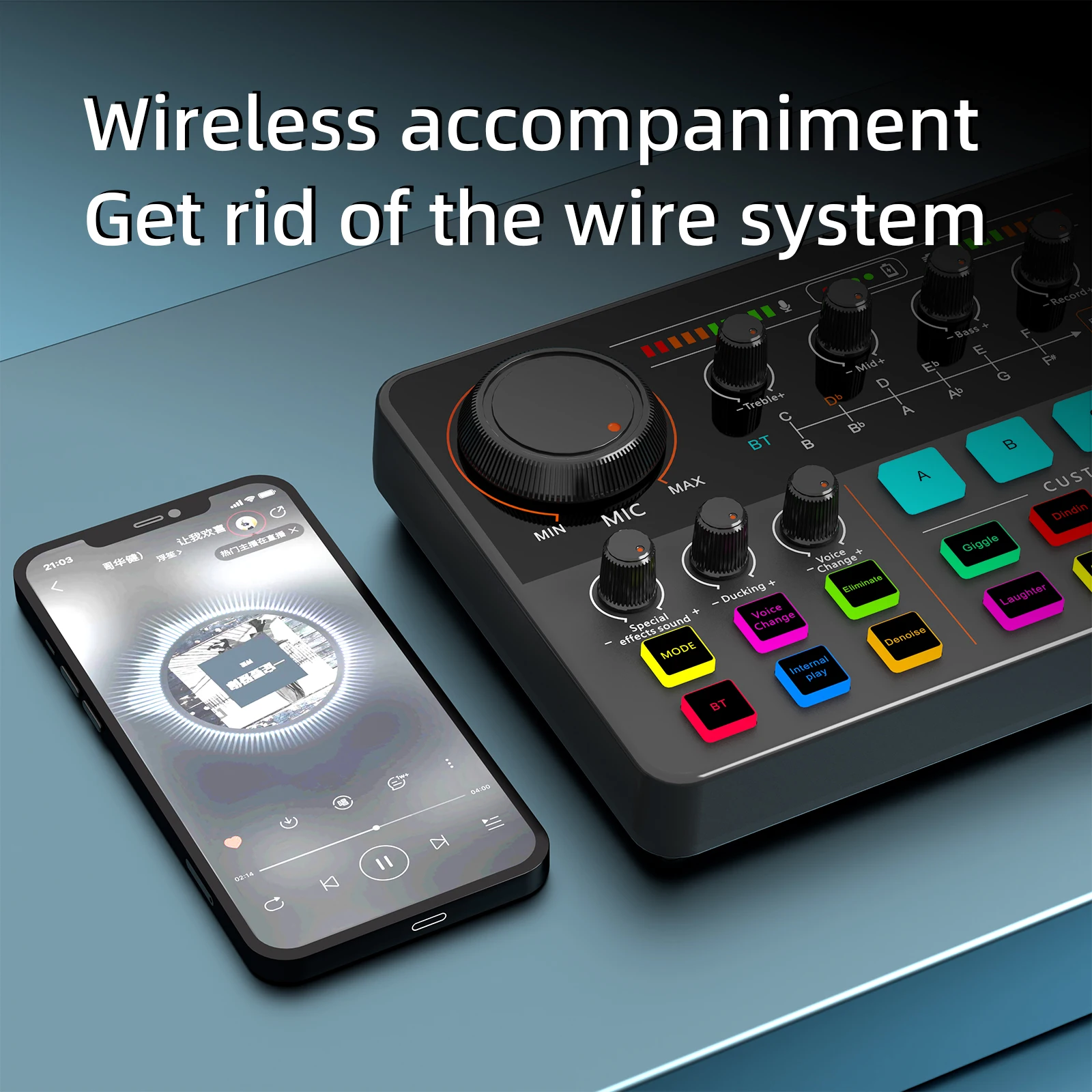 *Sound adjustment: high/medium/low frequency adjustment; Accompaniment, monitoring, reverb, recording adjustment; Microphone volume adjustment;