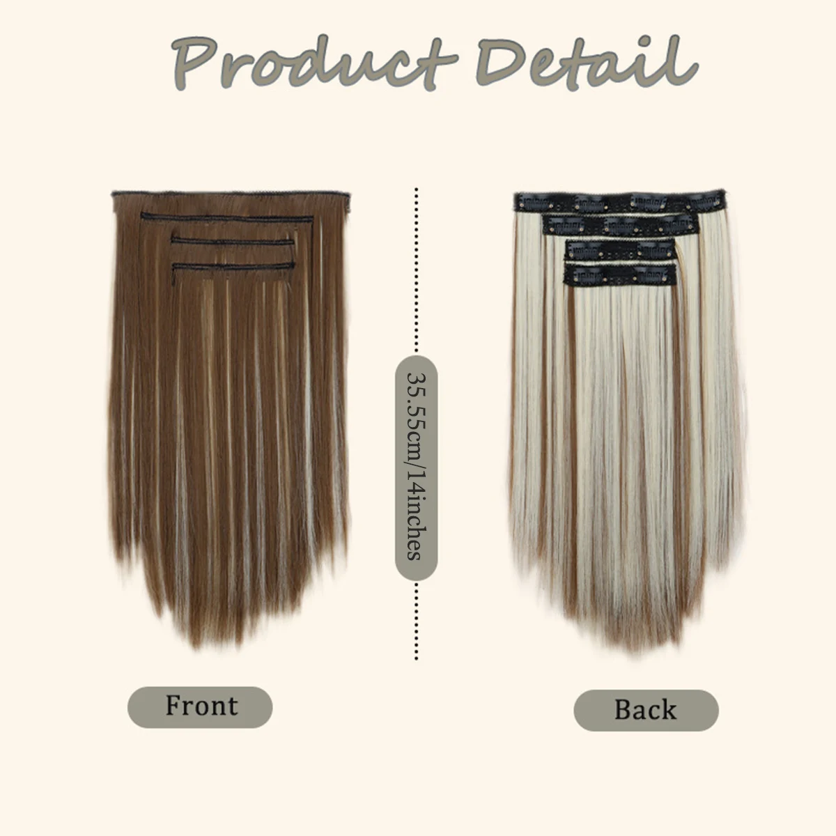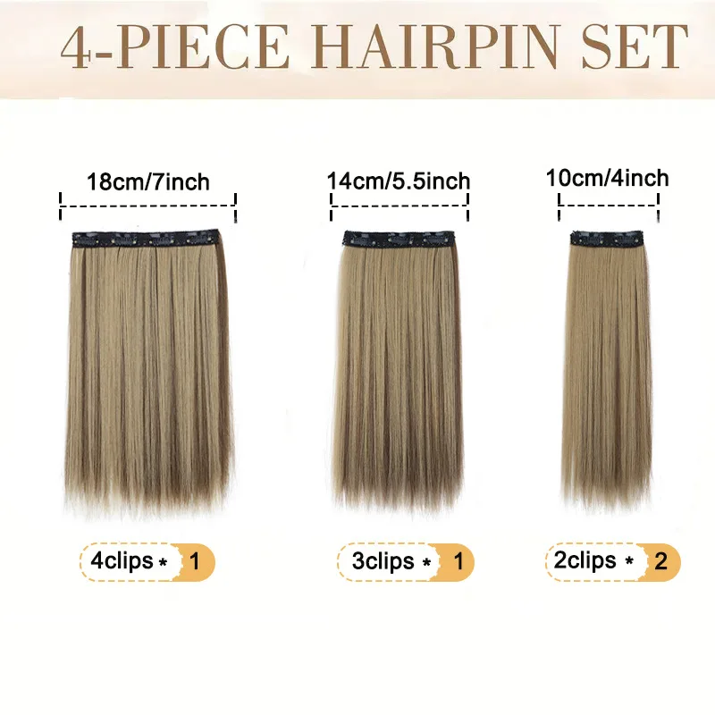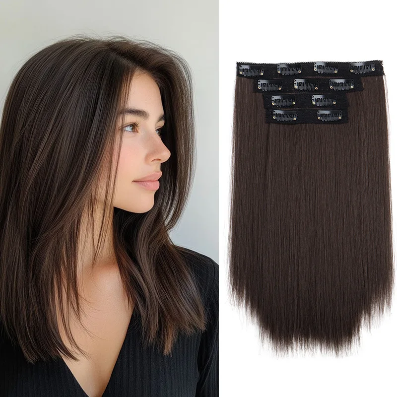 14-inch synthetic 4-piece straight hair wig clip on a woman’s hair extension heat-resistant wig black