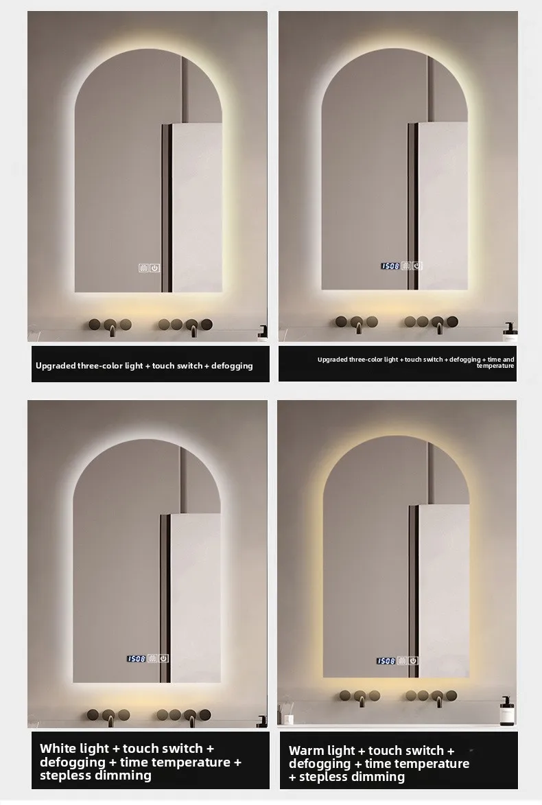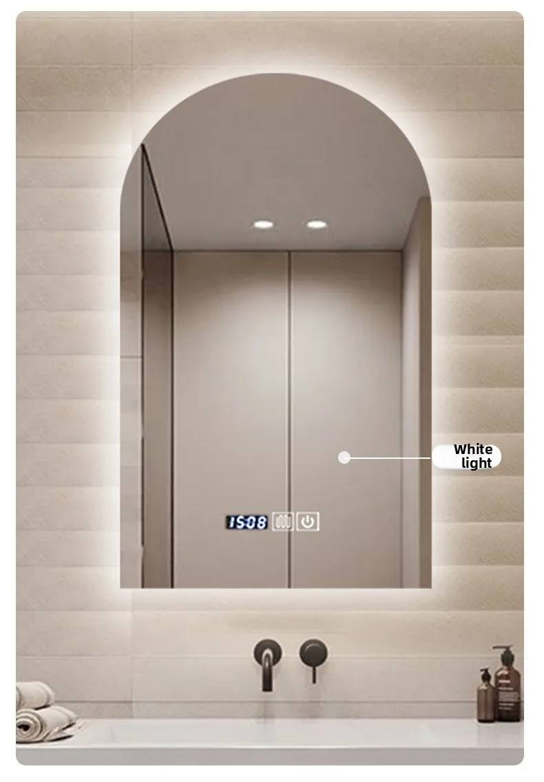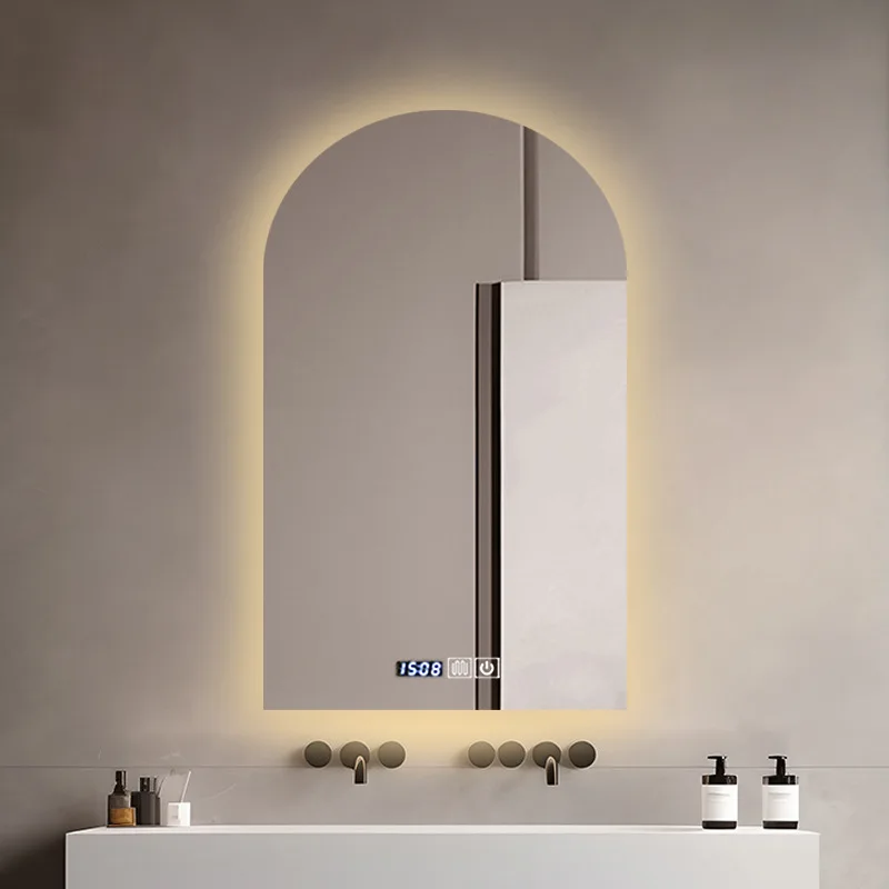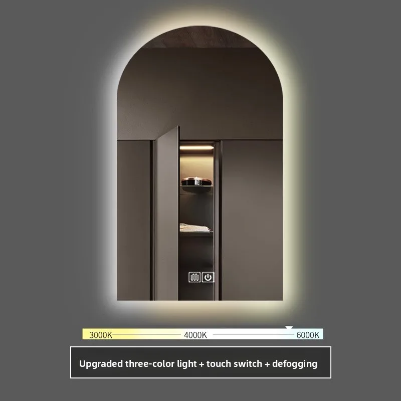 15.5 * 27.5 Inch Arch U-shaped Smart Bathroom Mirror LED Light Back Luminous Washstand Makeup Mirror Wall Hanging Vanity
