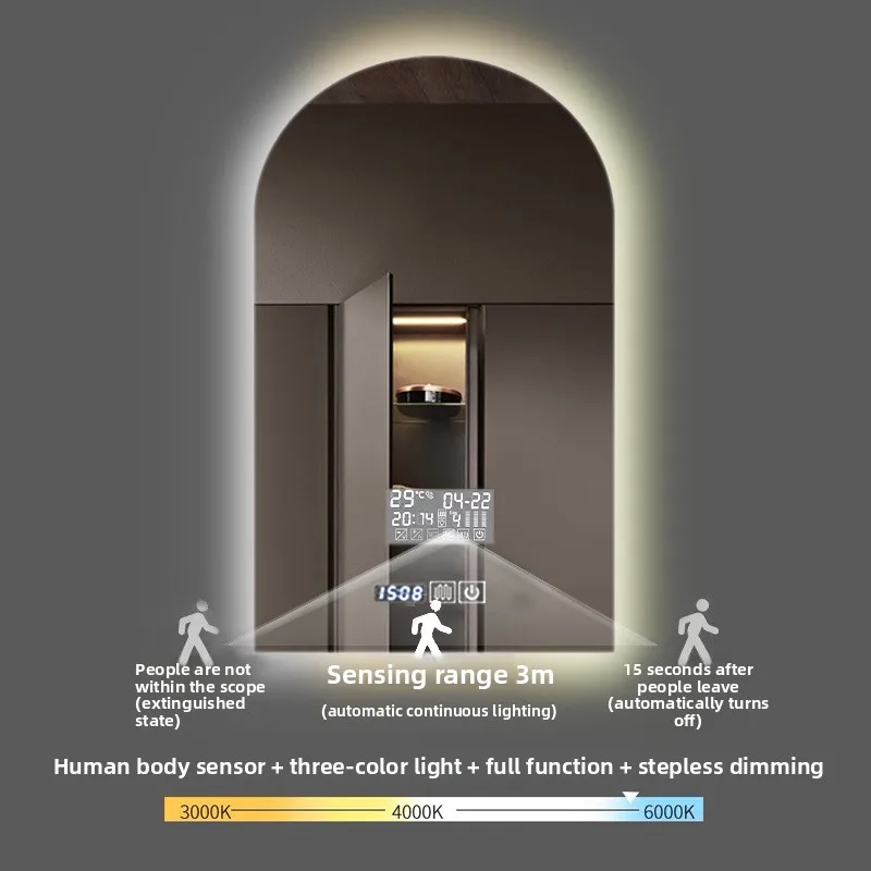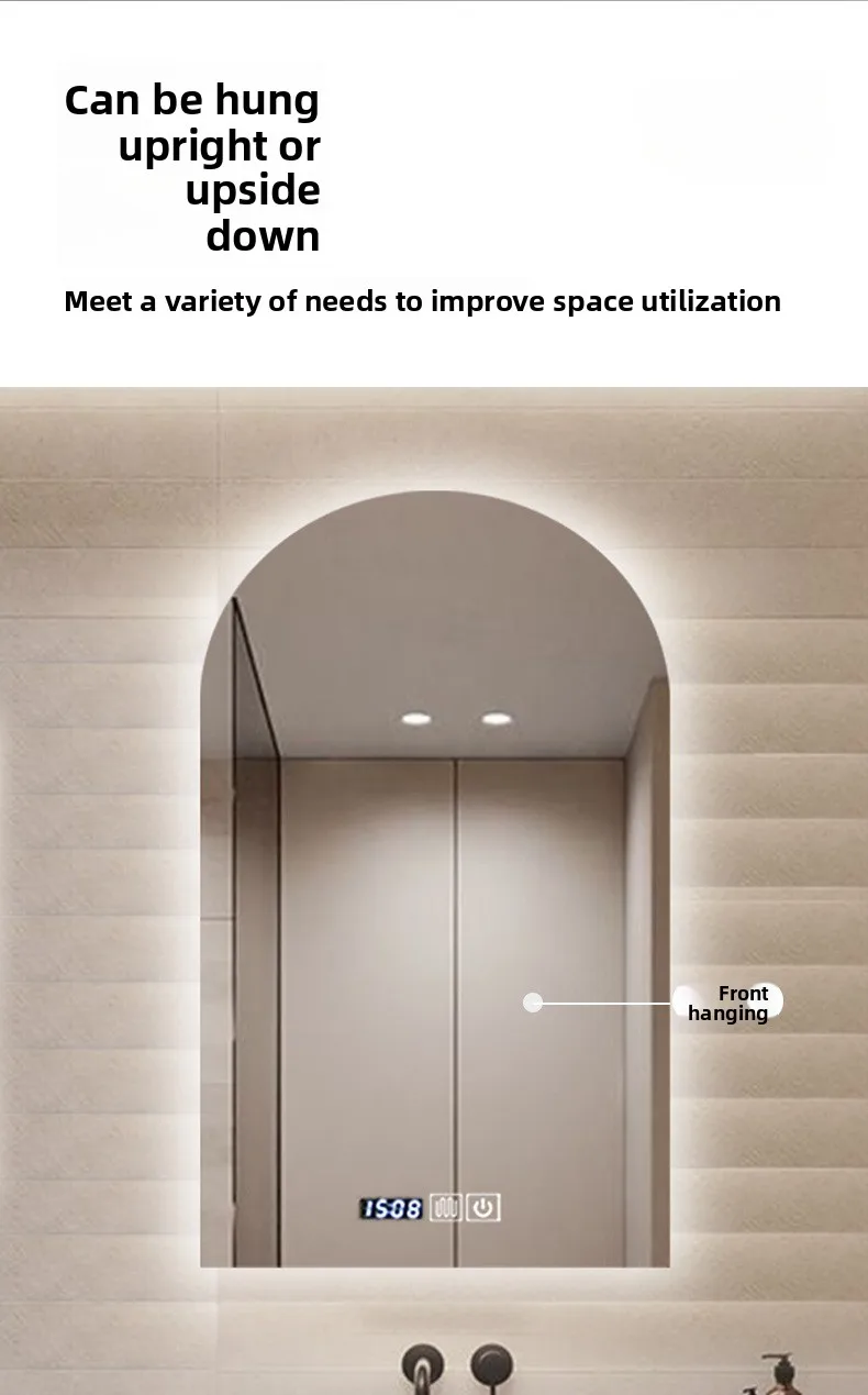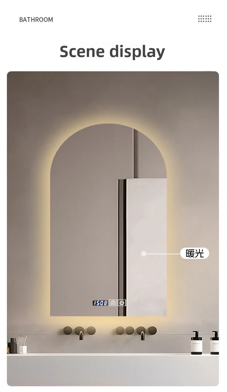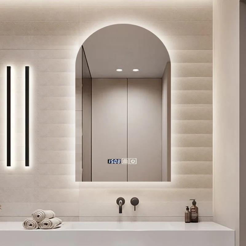 15.5 * 27.5 Inch Arch U-shaped Smart Bathroom Mirror LED Light Back Luminous Washstand Makeup Mirror Wall Hanging Vanity