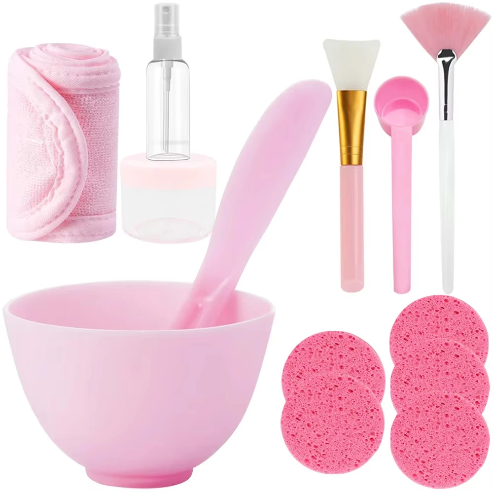 15PCS Face Skin Care Set Beauty Tool Mask Mixing Bowl Silicone Facial Mask Brushes Compressed Facial Sponges Spray Beauty Tools