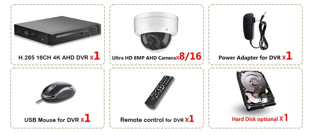 - AHD DVR Resolution: H.265 16CH 4K AHD DVR