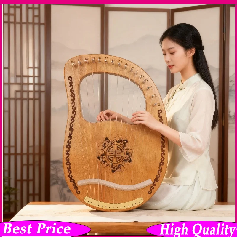 16-String Lyre Harp Mahogany Wooden Tunable for Kids & Adults Beginner Stringed Instrument 16 Notes Gift