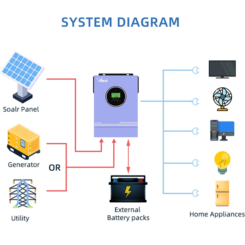 A: If household appliances contain inductive load appliances, such as refrigerators, washing machines, air conditioners, etc., the power of the inverter is at least three times the total power of the inductive load appliances, otherwise the appliances may not be able to start.