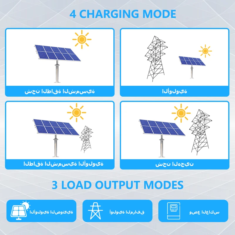 4. Shutdown sequence: turn off the switches of load, PV and mains, turn off the inverter, and finally turn off the battery.