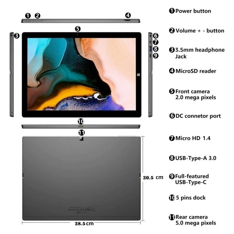 16GB RAM 512GB SSD ROM 11.6″ Windows 11 Tablet PC 64bit Intel Celeron Processor N4100 1920 x 1080 Pixel 2 x USB 3.0 Type-C Port