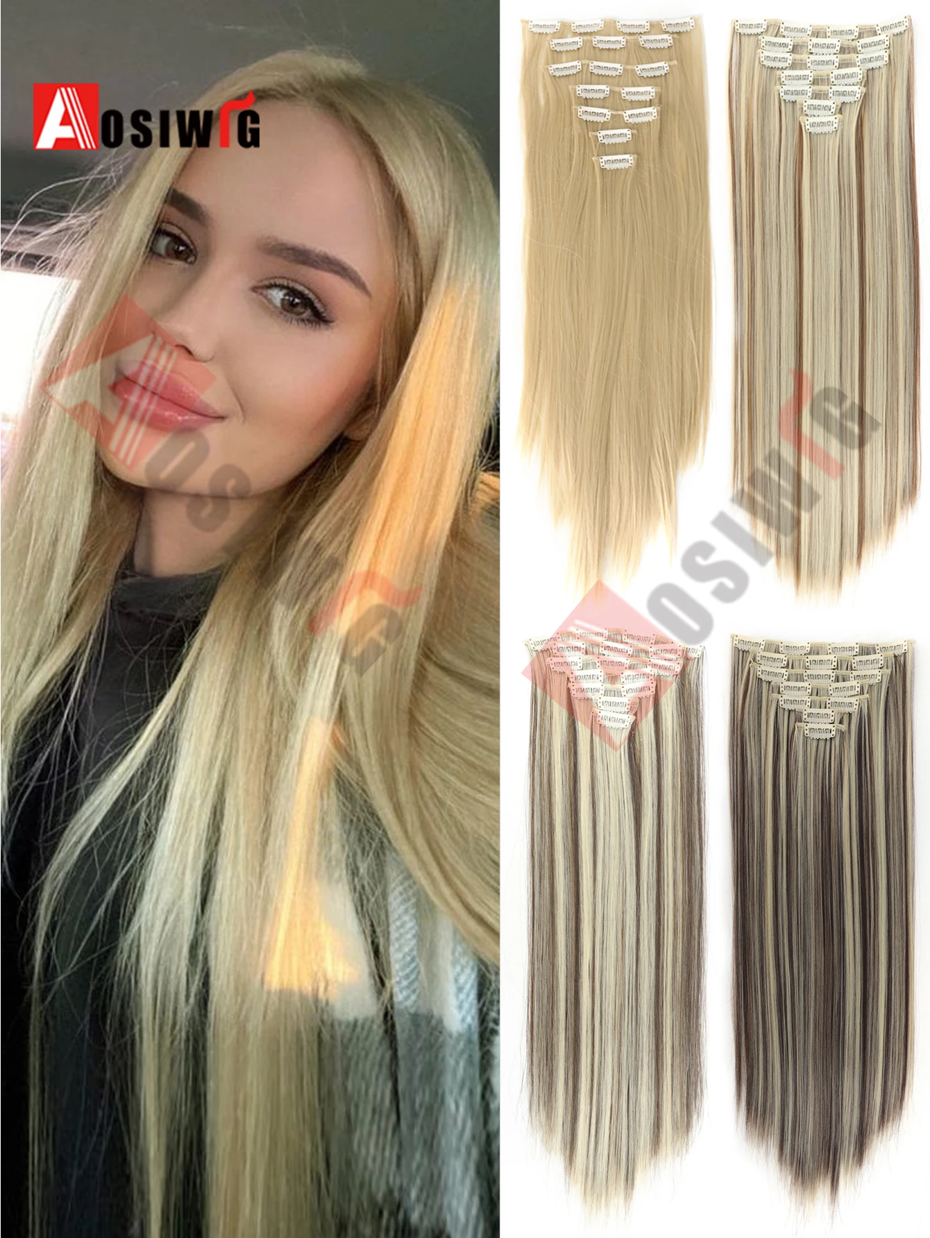 18-32Inch 16 Clips in Hair Extensions Long Straight Hairstyle Synthetic Blonde Black Hairpieces Heat Resistant False Hair Daily