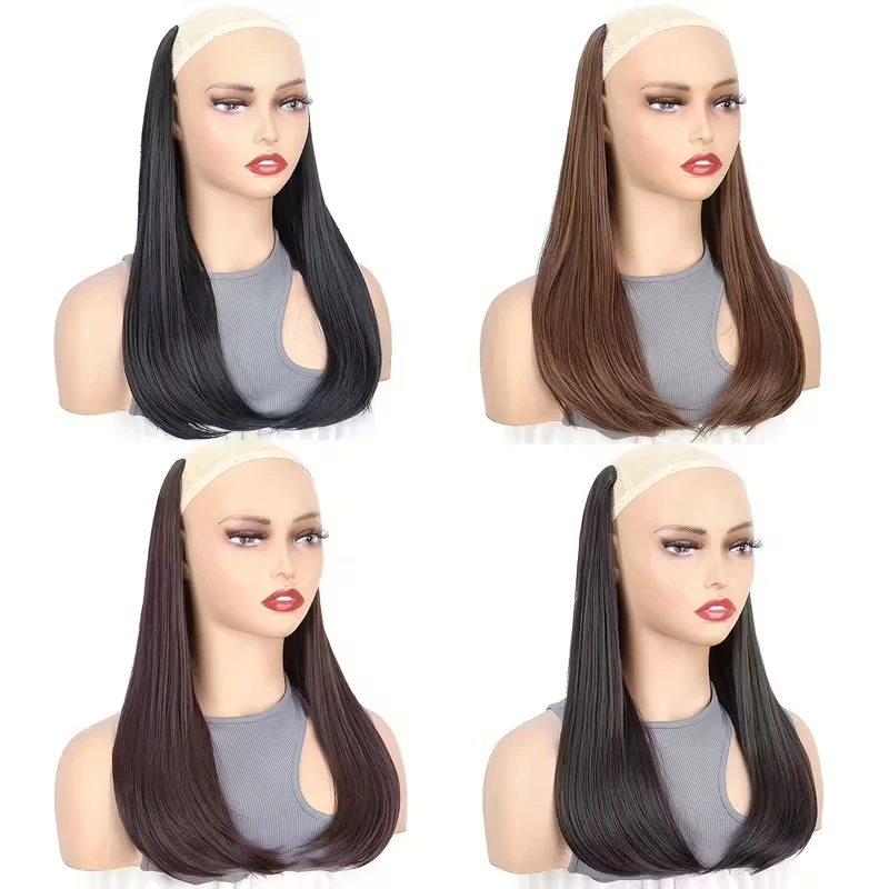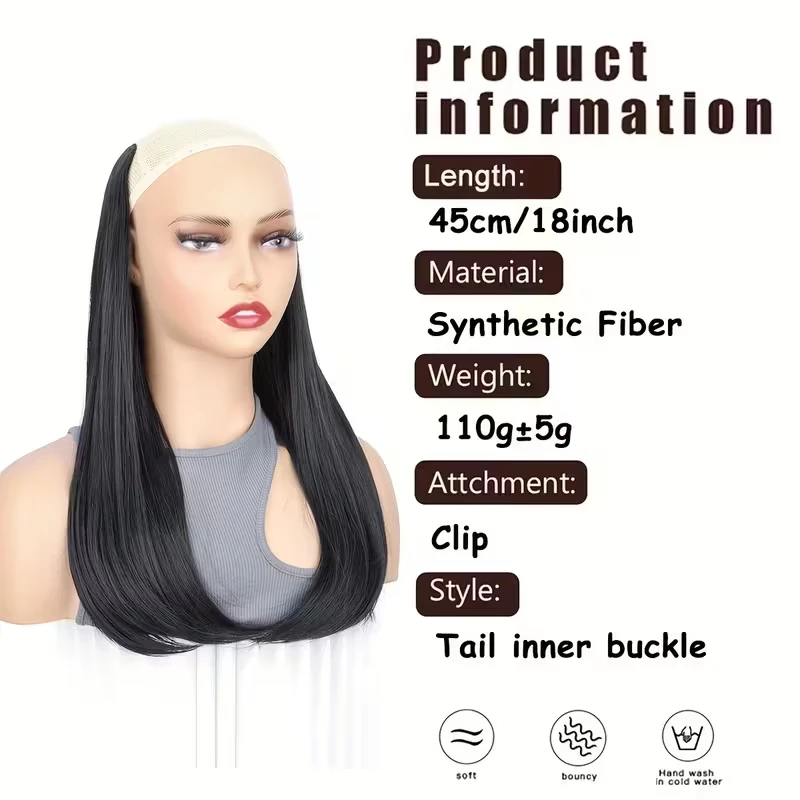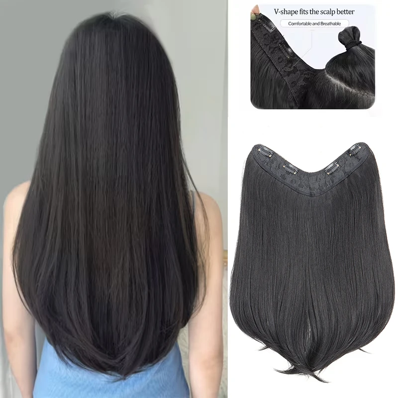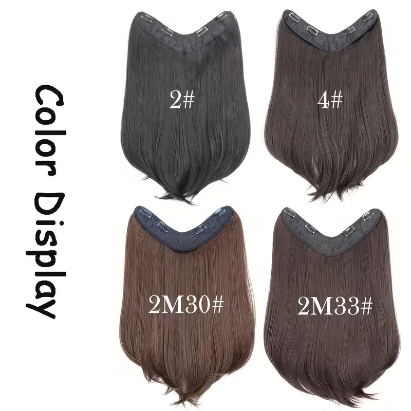 18Inch Synthetic Long Straight Inner Buckle Hair Extension 4 Clips V-shape Natural Brown Black Hairpiece for Women