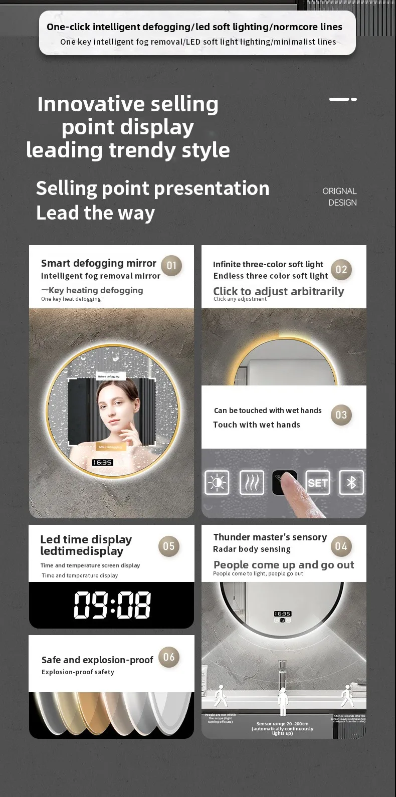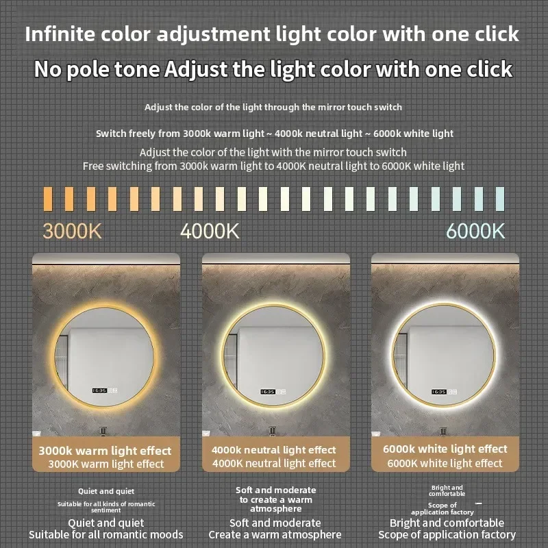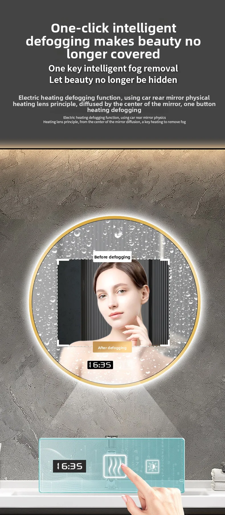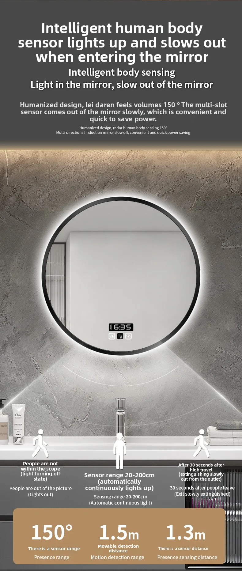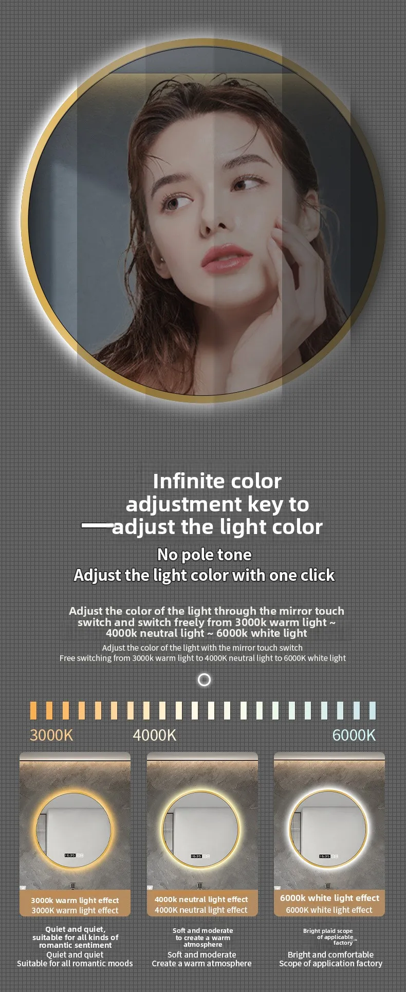 19 Inches Bathroom Makeup Mirror Induction Mirror Touch Fashion Diameter 50CM Round Bathroom Mirror Led Luminous Hotel Miroir