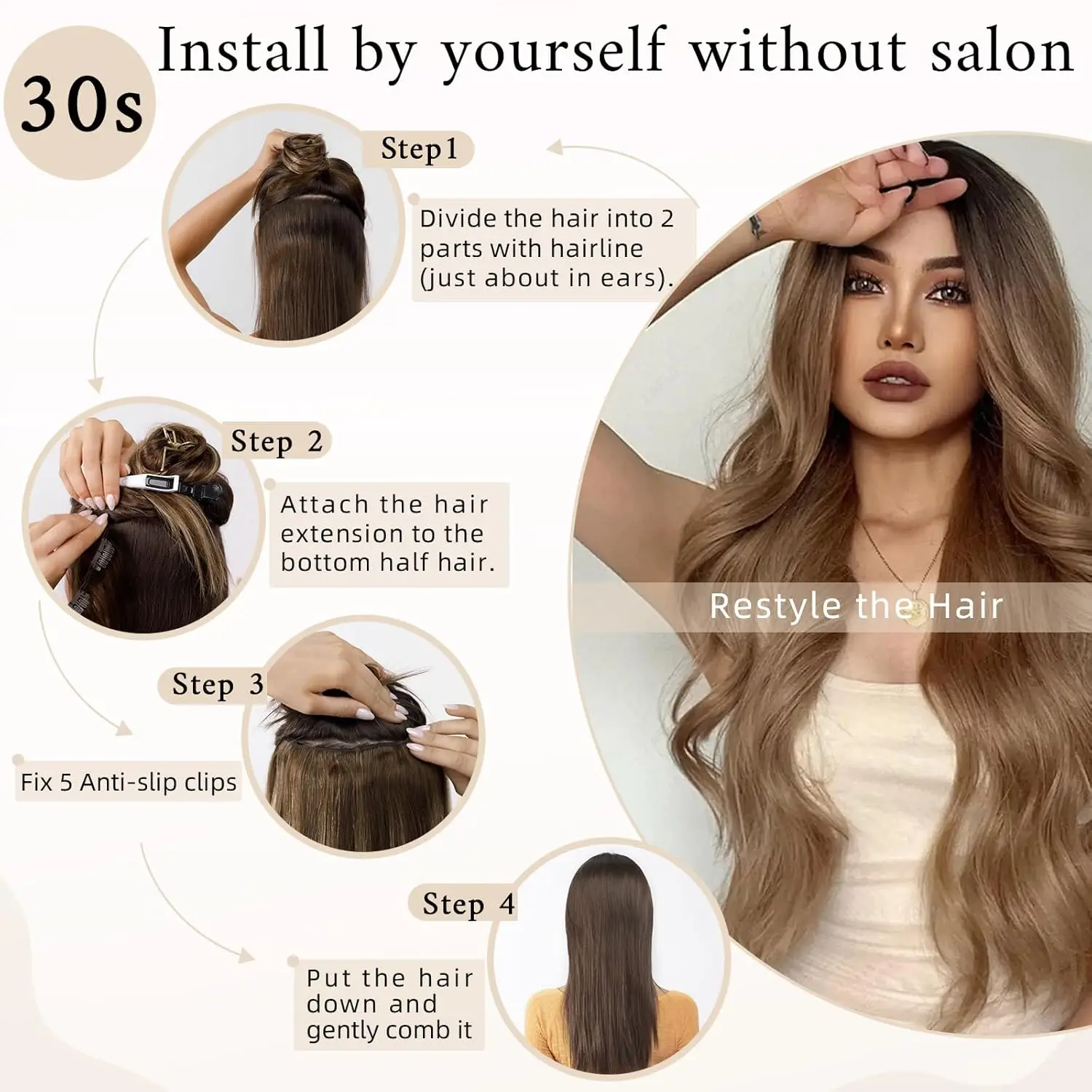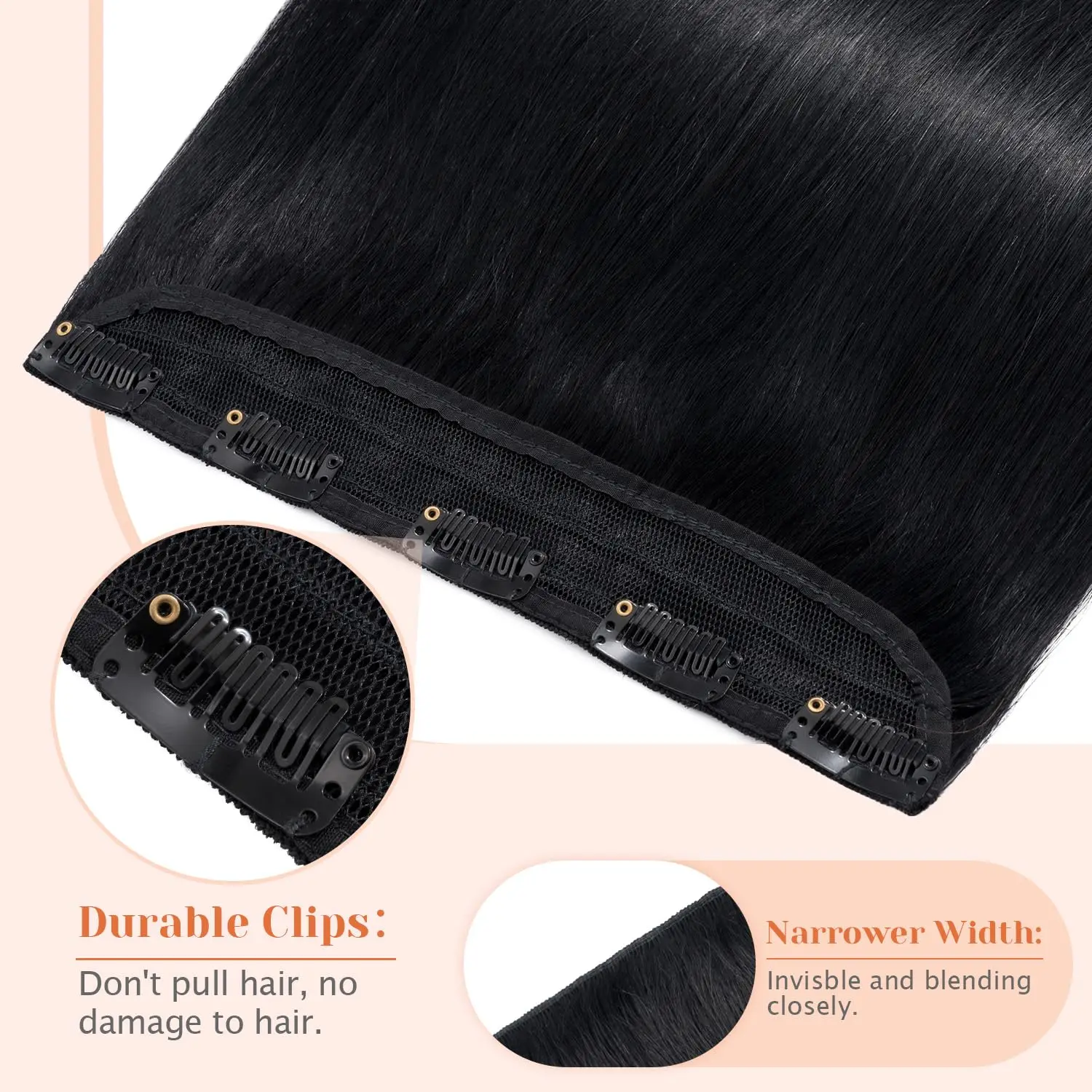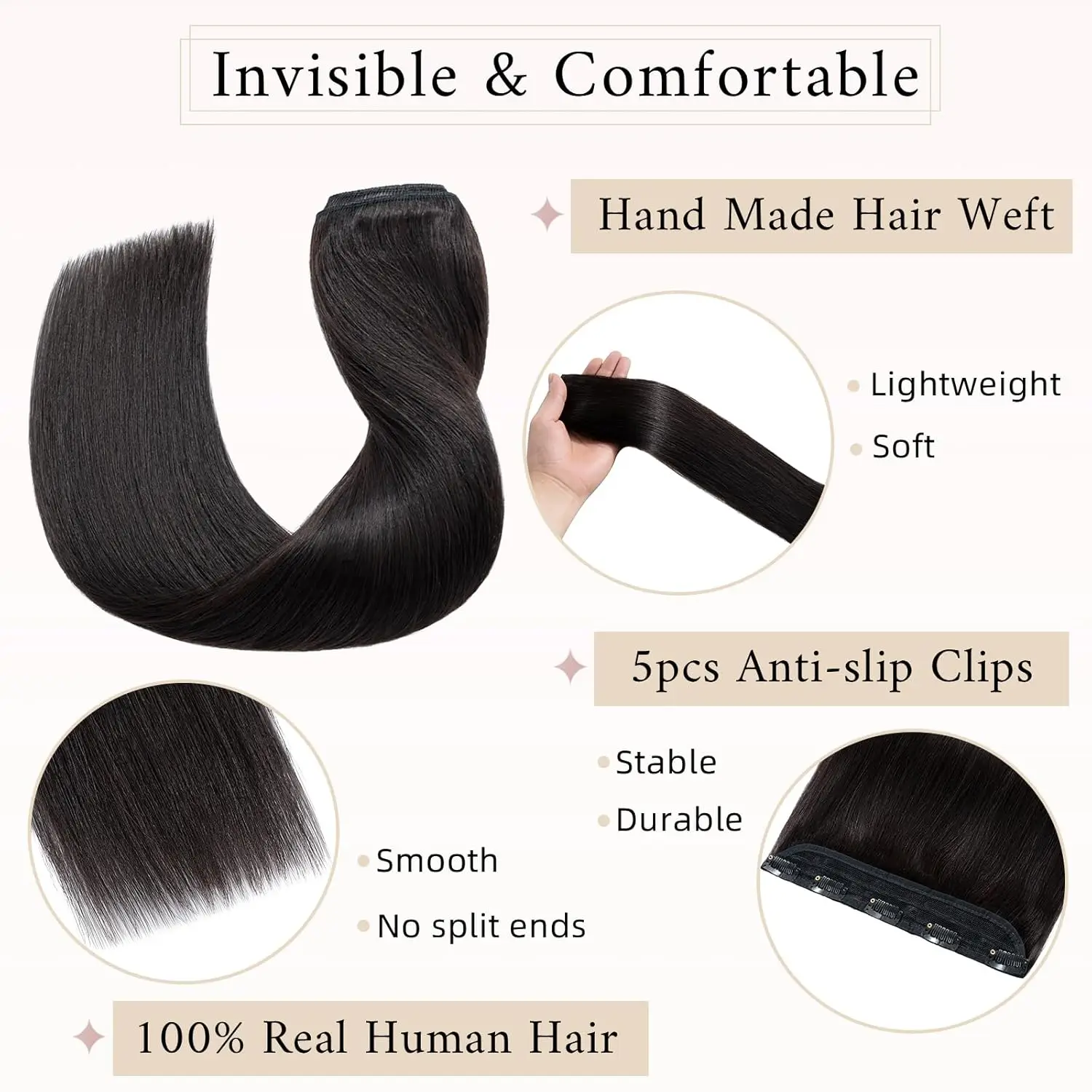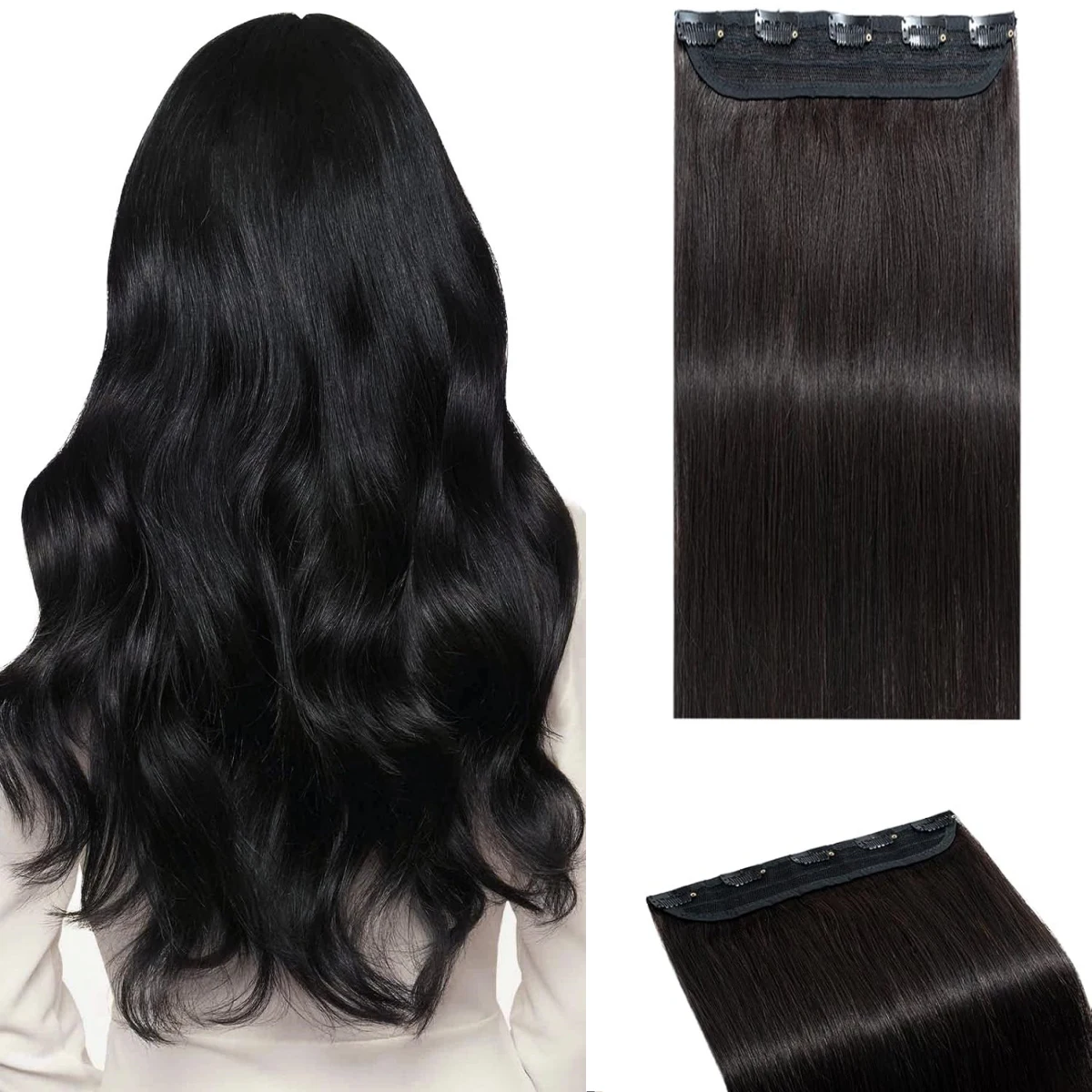 1B Straight One Piece Clip In Hair Extensions 100% Real Human Hair 5 Clips 3/4 Full Head Clip In Human Hair Extensions For Women