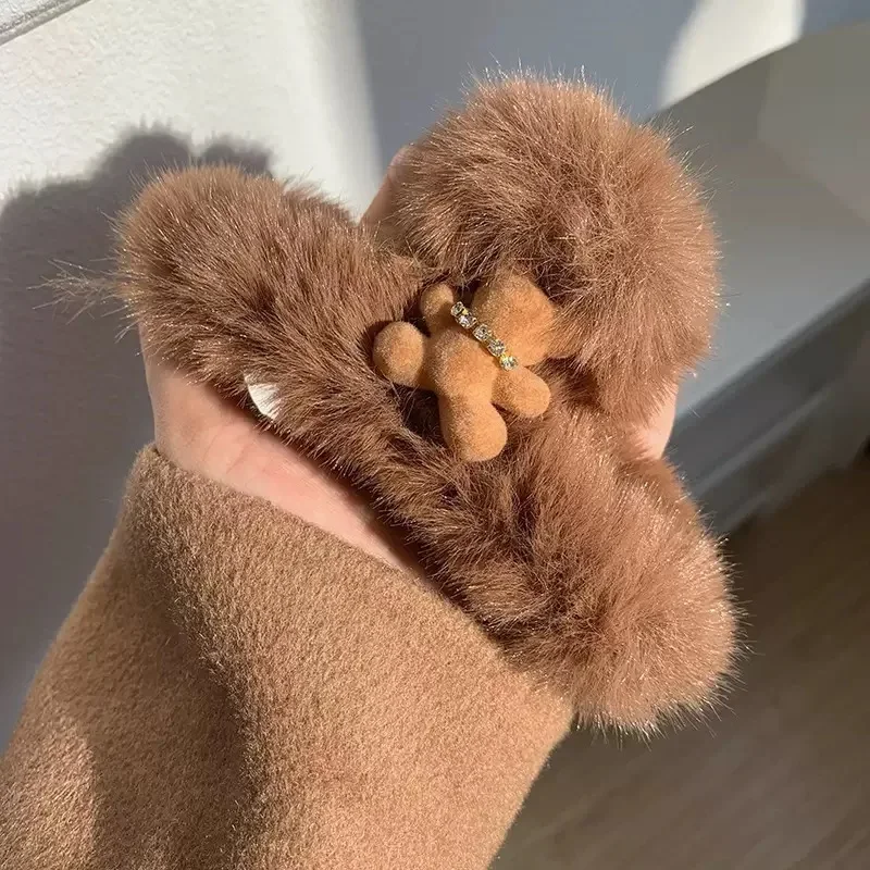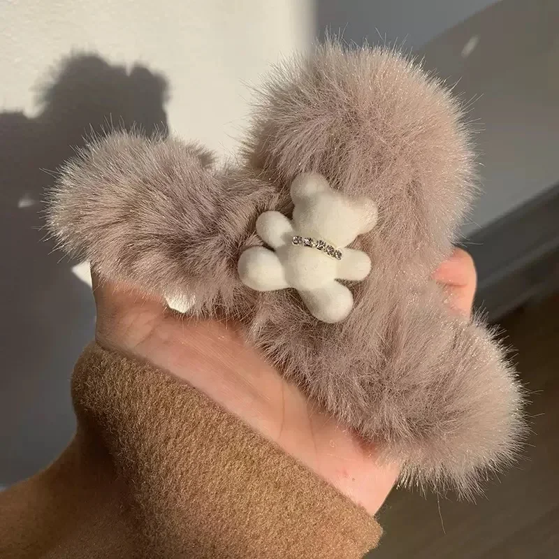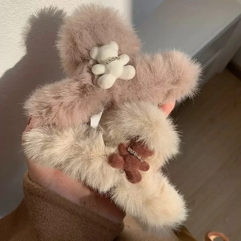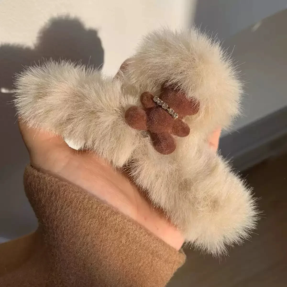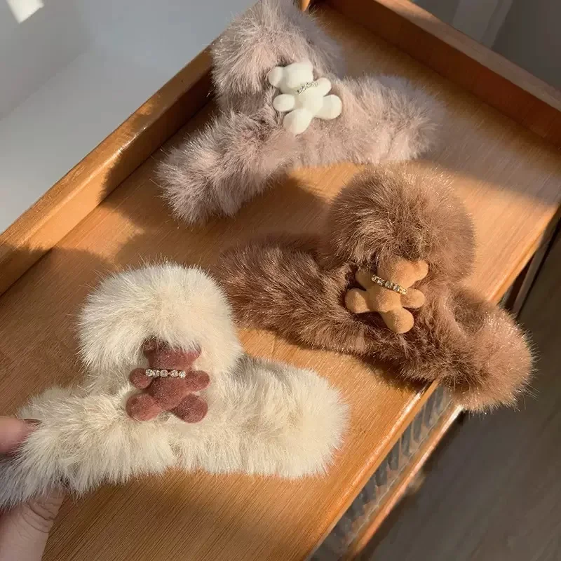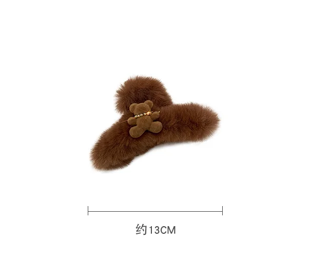 1pc Autumn and Winter Cute Rhinestone Plush Bear Hair Clip Elegant Back Hair Bun Shark Clip Hair Accessory Hairpin