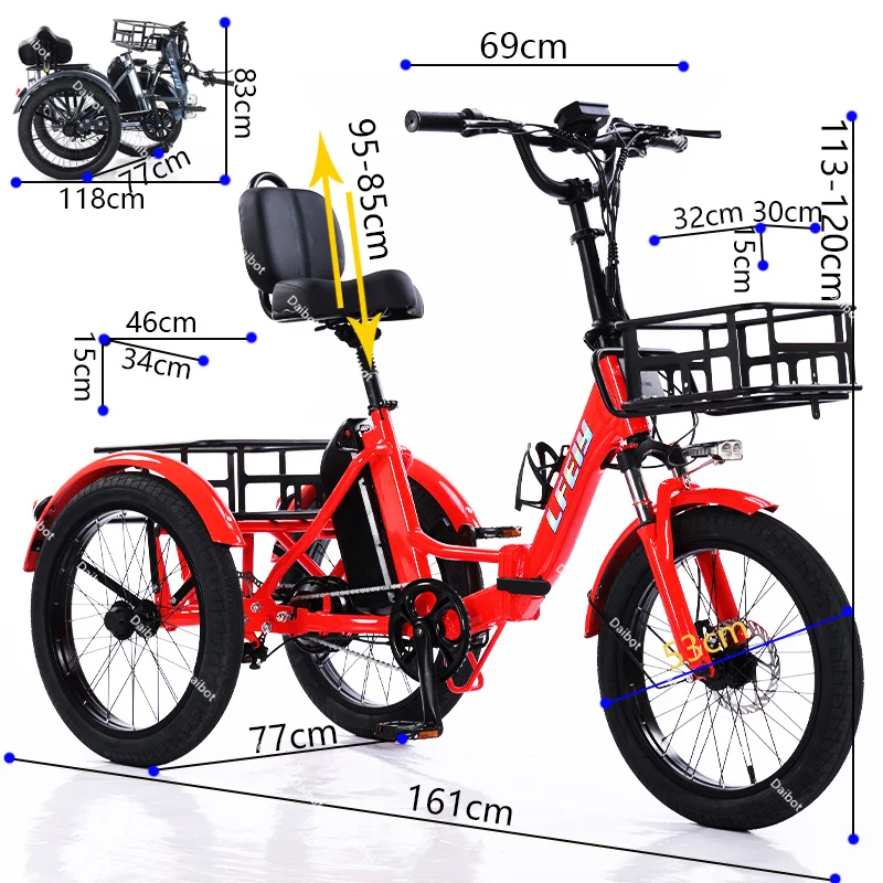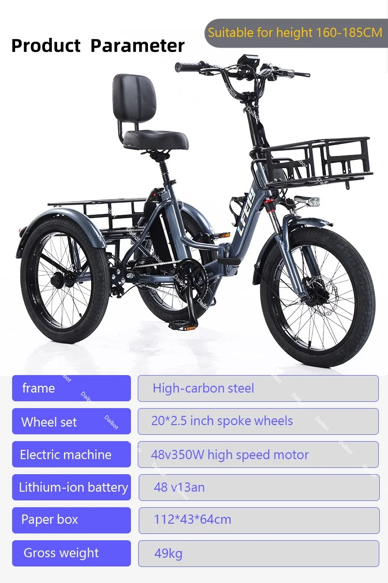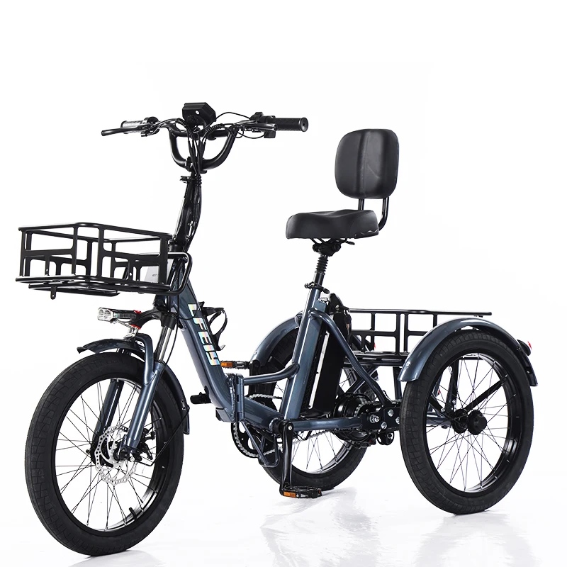 20 Inch Folding Electric Bicycle For Adults Electric Tricycle Cargo Bike 3 Wheels Adult For The Elderly With Rear Basket