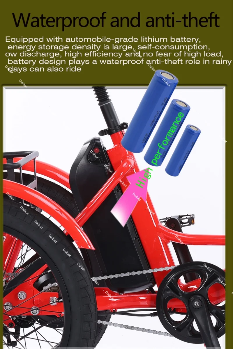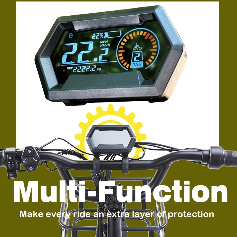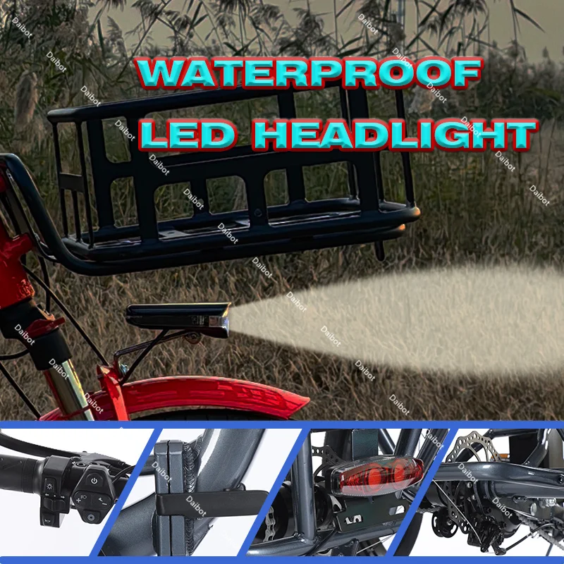 Feature: Front and rear disc brakes, Smart LCD Display, Horn, LED Headlight, Taillight,Turn Light, Removable Battery(can be taken out for charging), Park Brake ( keep the bike in place when parked, especially on steep inclines or declines), Three Riding Modes( Pedal Mode, Mop Mode and Pure Electric Mode)