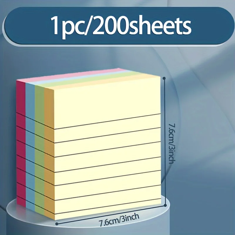 200-Piece Colorful Lined Sticky Notes – Square, Easy-To-Use For Students & Office, Perfect Back To School Supplies