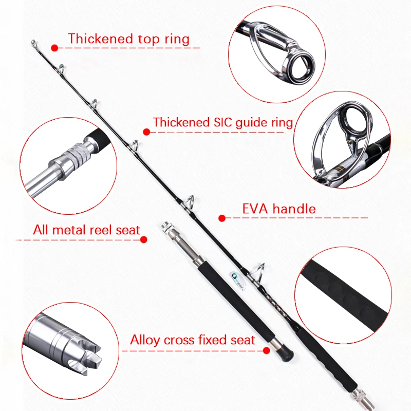 2022 MADMOUSE Big Game Rod High Carbon Strong Power Strengthen Guides Trolling Rod 37-60kgs 60-110lb 1.80m Boat Fishing Rod