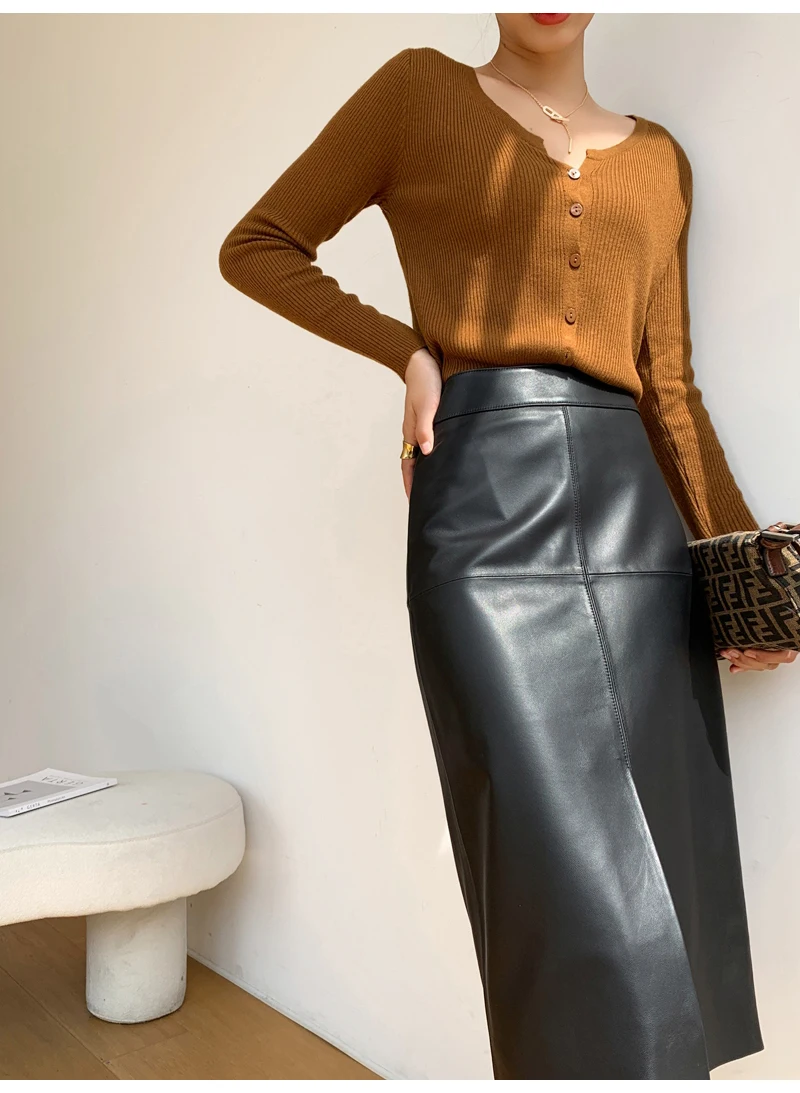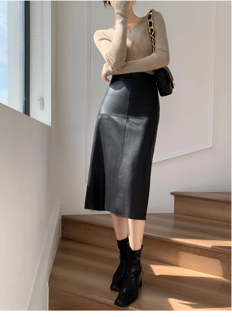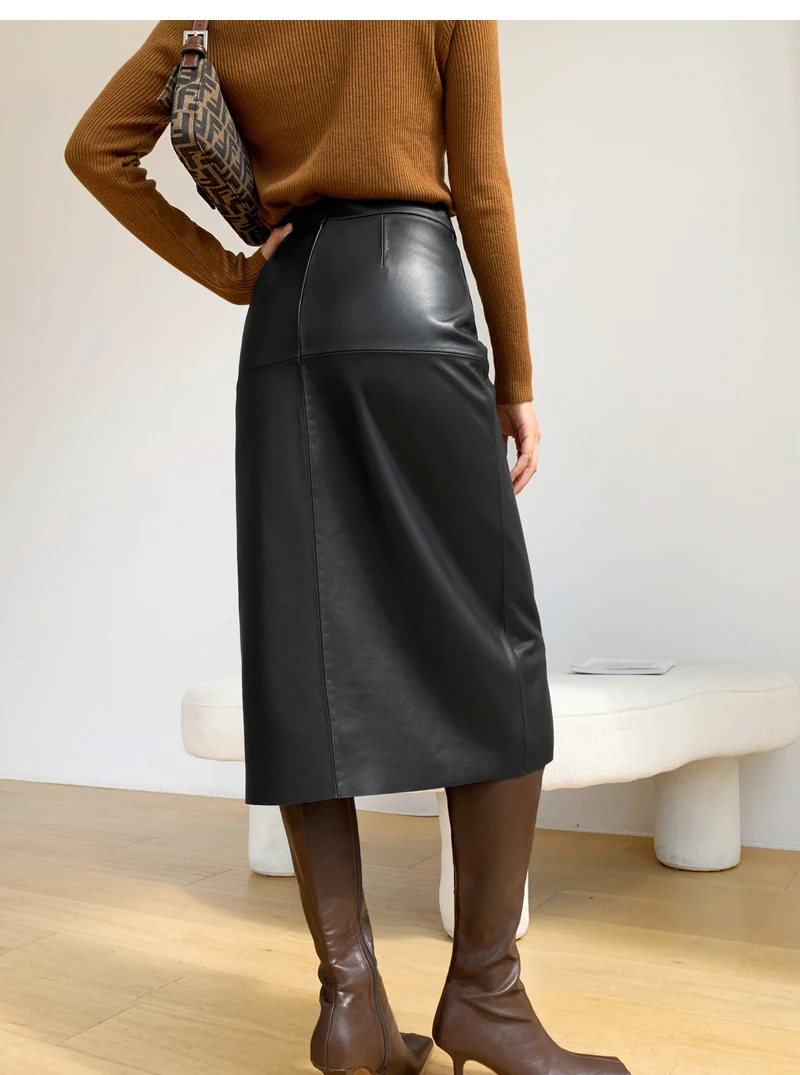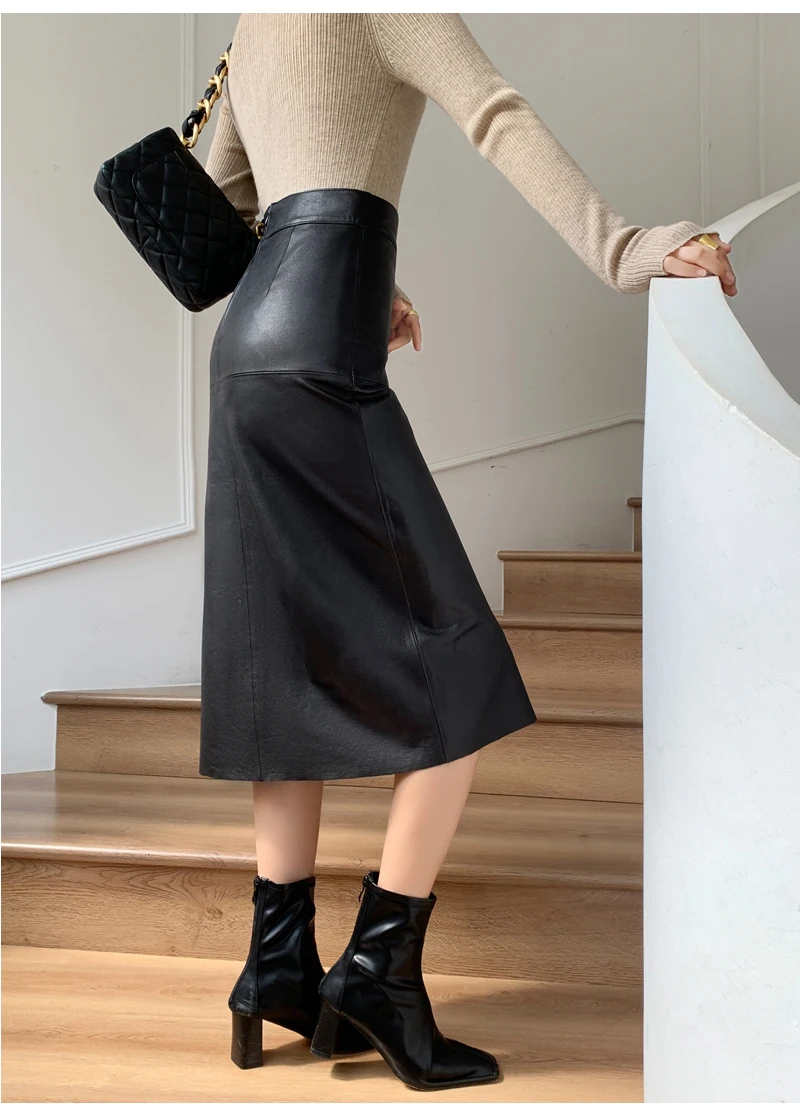 Be the first to review “2025 New Genuine Leather Skirt for Women Vegetable Tanned Sheepskin Wrap Long Faldas Mujer Mid Length Front Slit Mid-Calf”