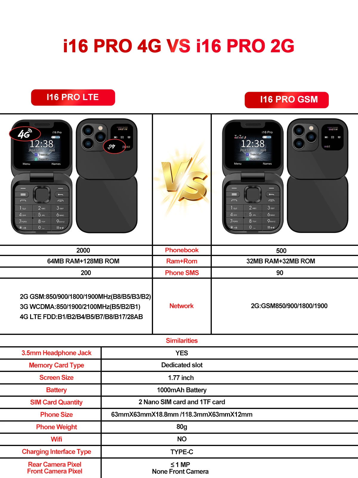 Phone Weight : 80g (Including battery)