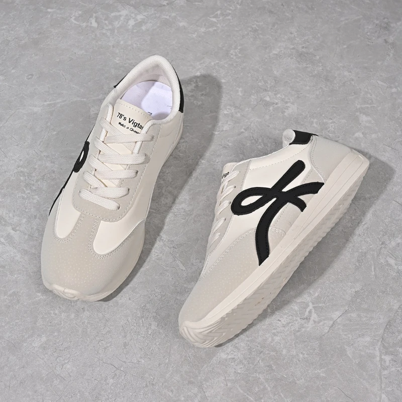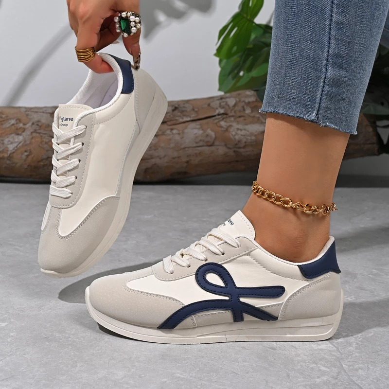2025 new women’s sports shoes casual lace up women’s fashionable vulcanized shoes versatile flat shoes