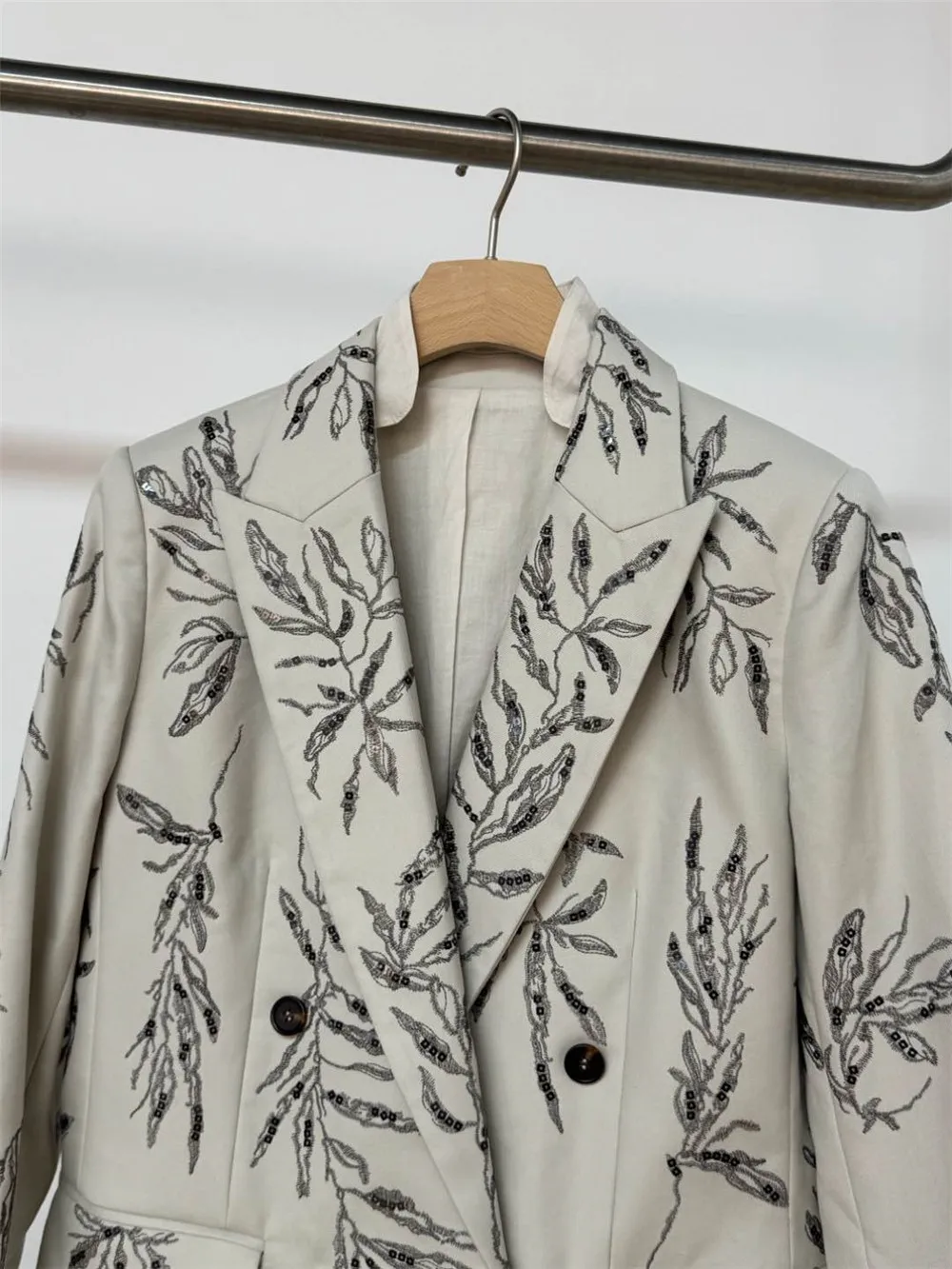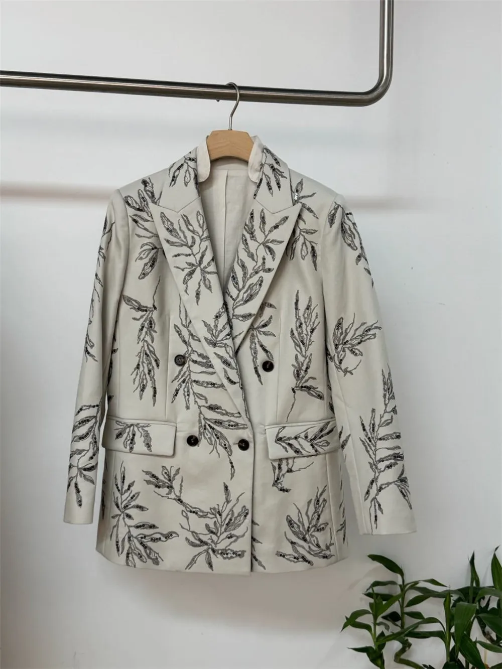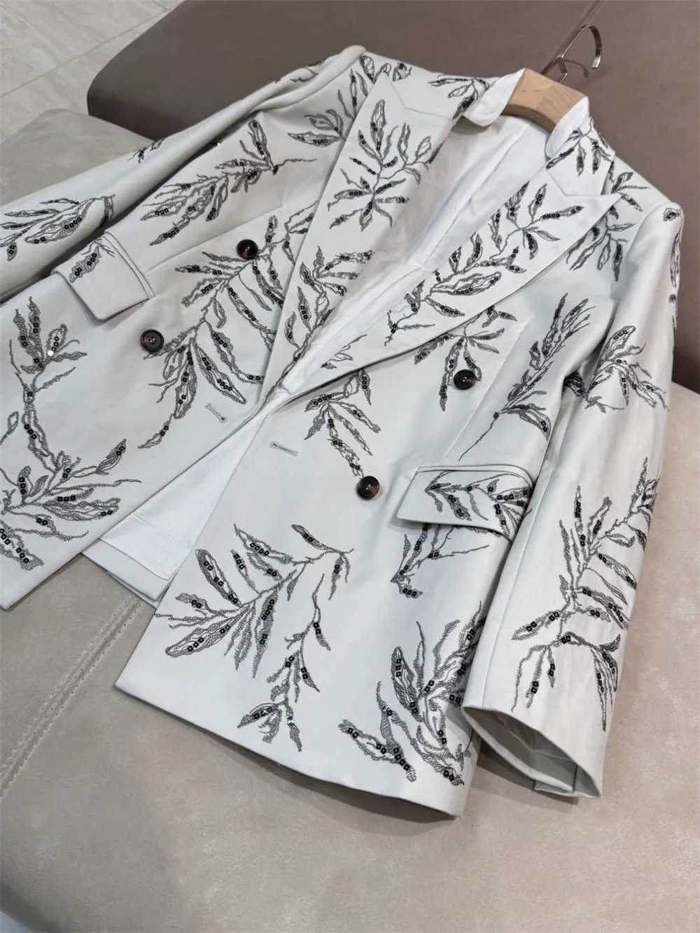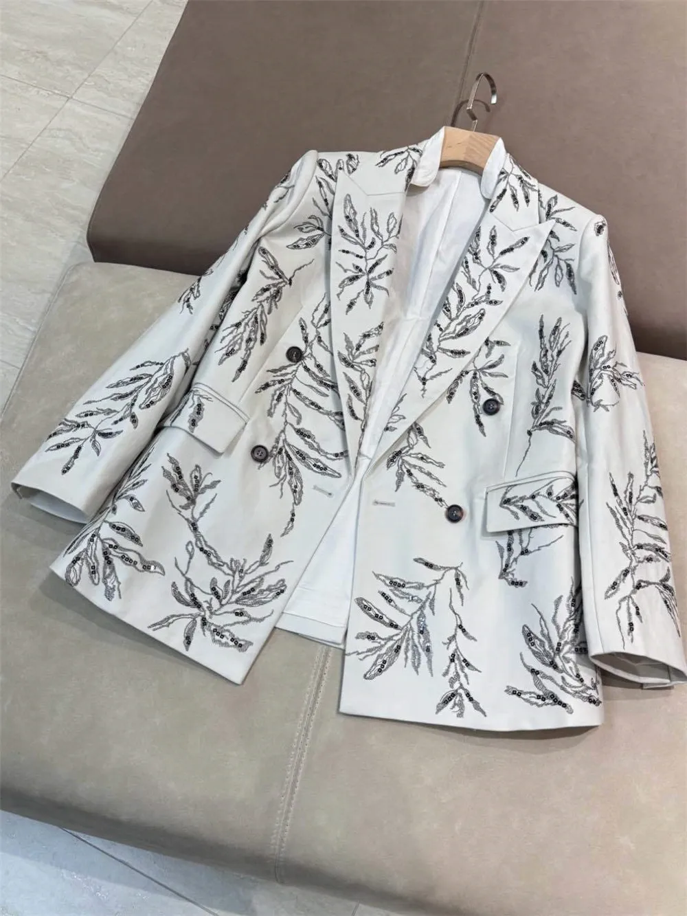 2025 Spring Summer Women’s Blazer Jacket Exquisite Sequined Long sleeve Straight Suit Coat