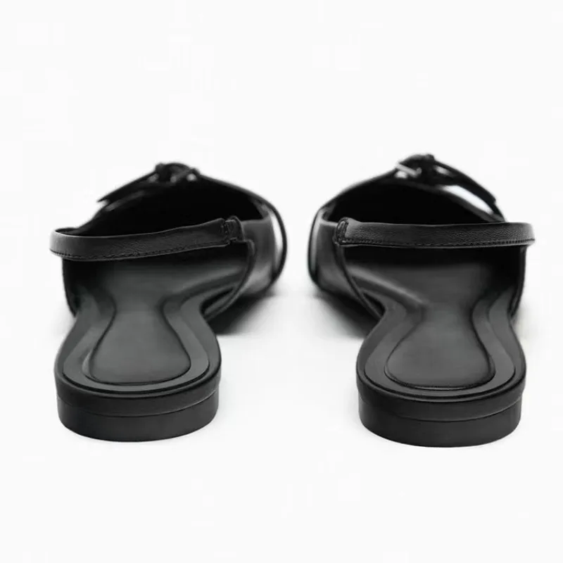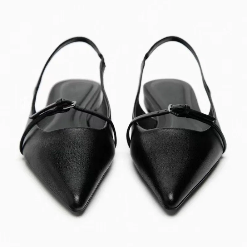 2025 Summer New Women’s Flat Bottom Slingback Sandals Woman Leopard Pointed End Mules Fashion Leather Pu Low-heel Beach Shoes