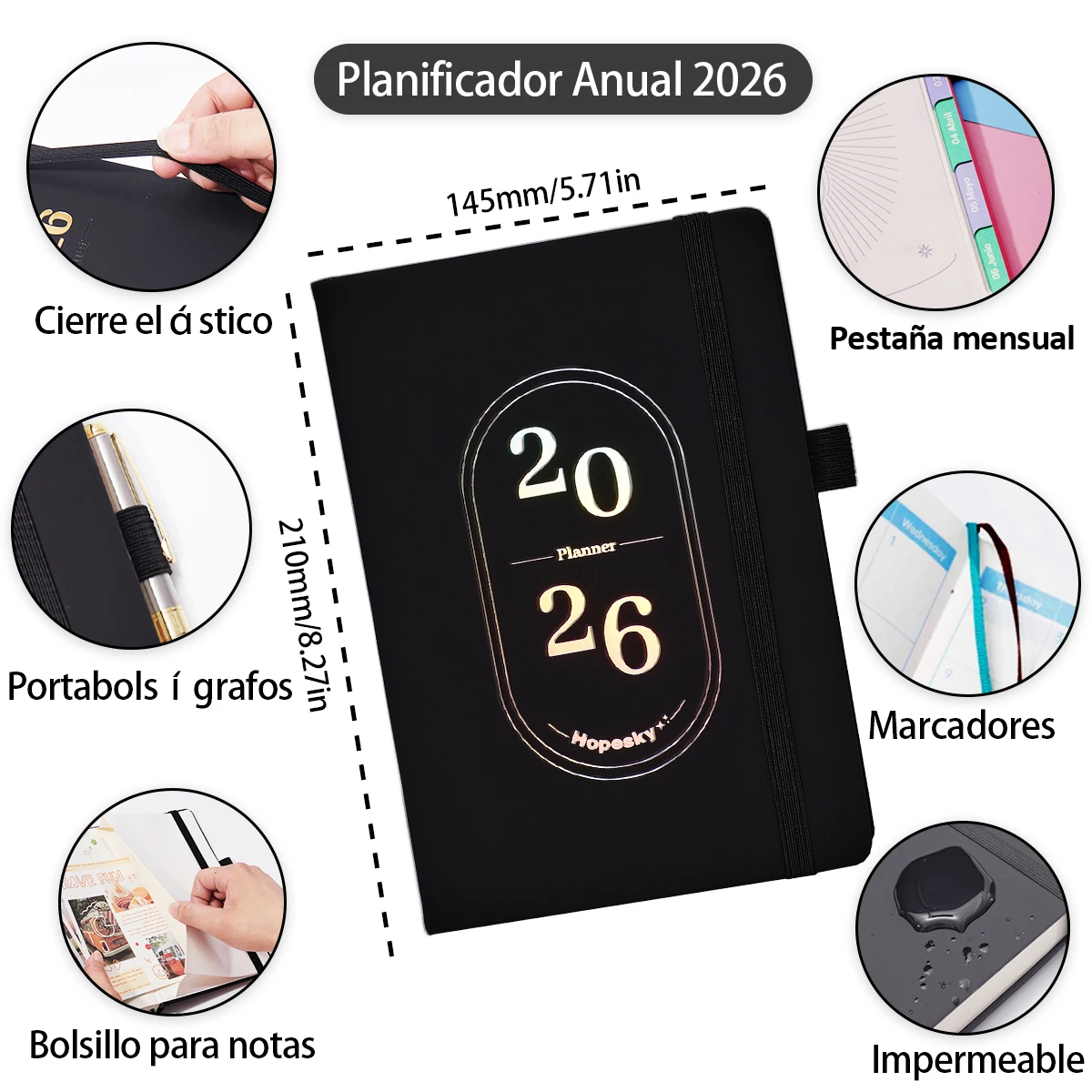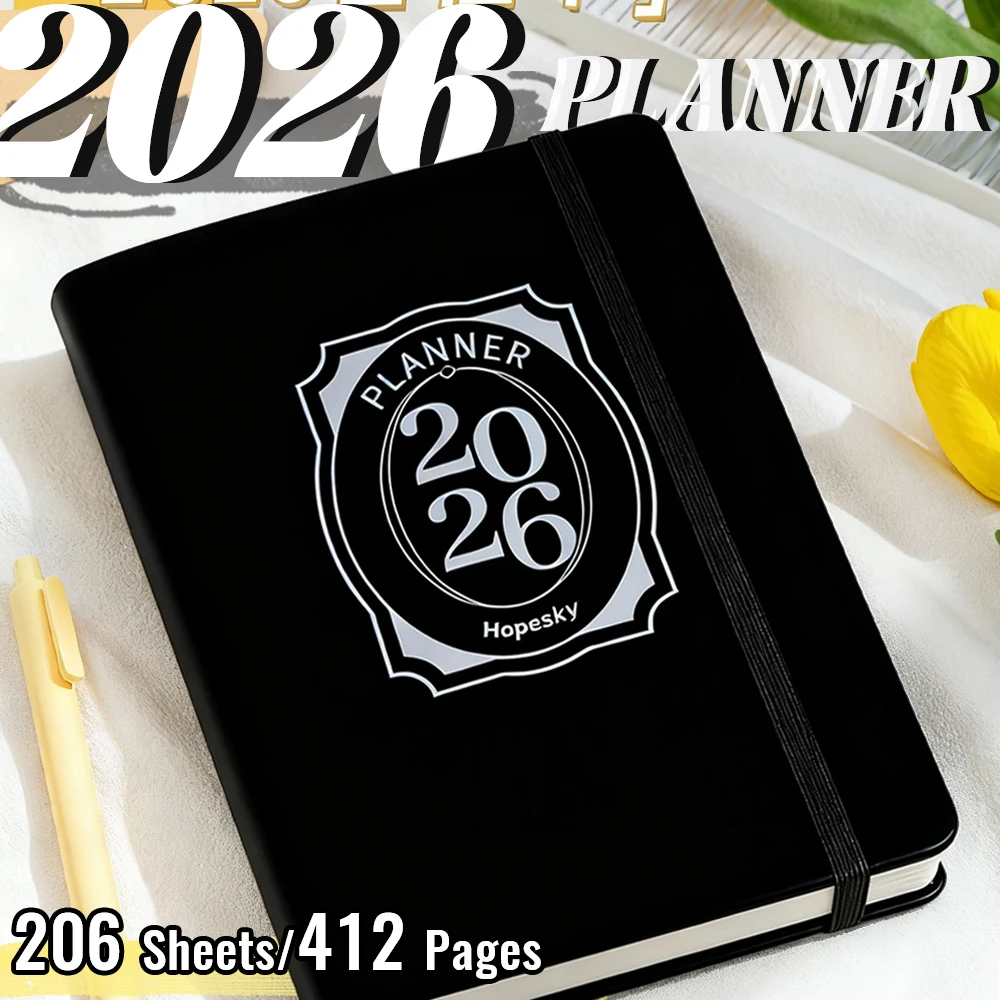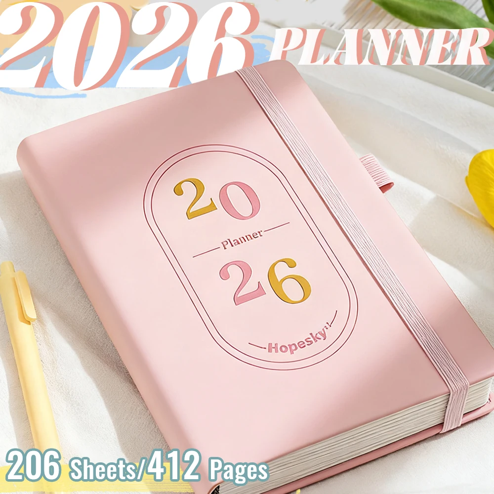 2026 Planner A5 Agenda 412Pages Weekly Monthly Plan Calendar Waterproof PU Leather Daily Organizer with Pen Holder Notebooks