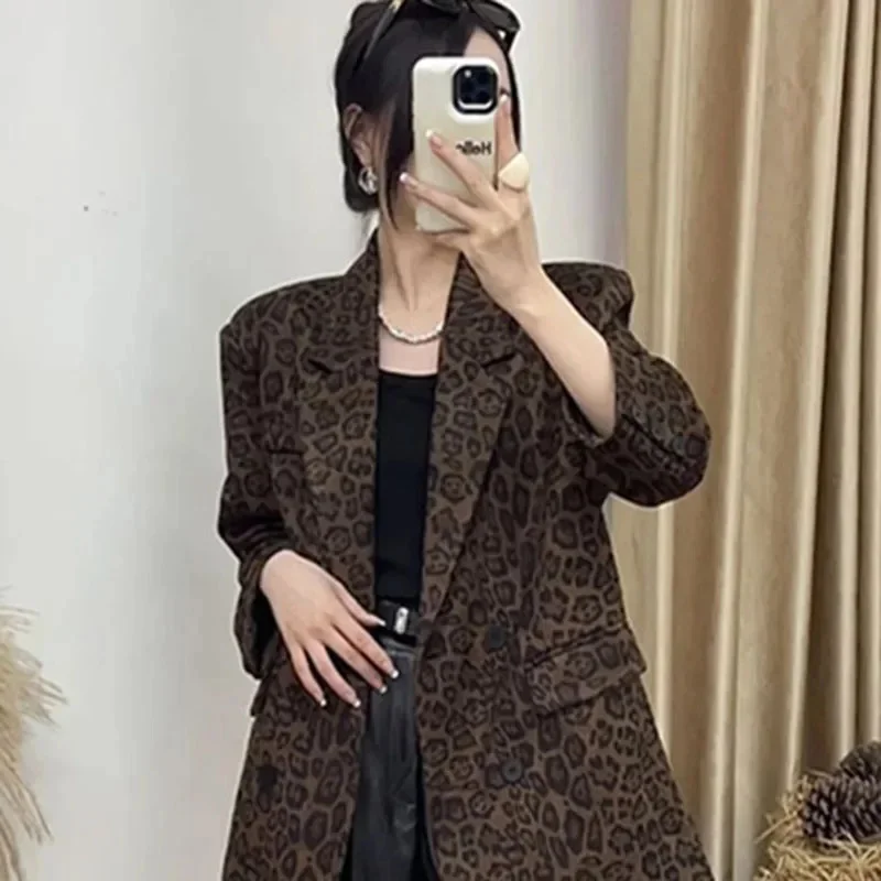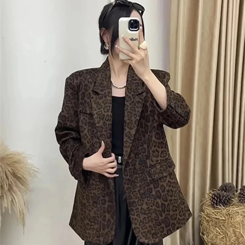 2026 Spring Autumn New Korean Fashion Leopard Print Blazer Women Long Sleeve Suit Coat Female Casual Office Outwear Ladies Tops