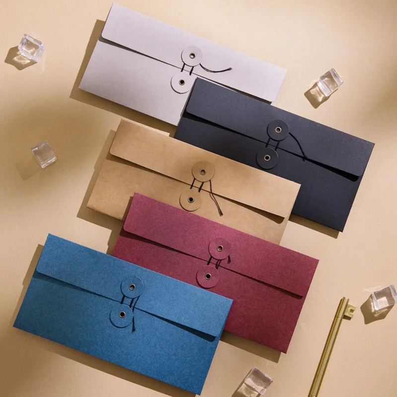 20PCS Color Paper Envelope 200gsm Kraft Gift Envelopes 22x11cm Winding Storage Bag Invitation Packaging Envelope Party Supplies