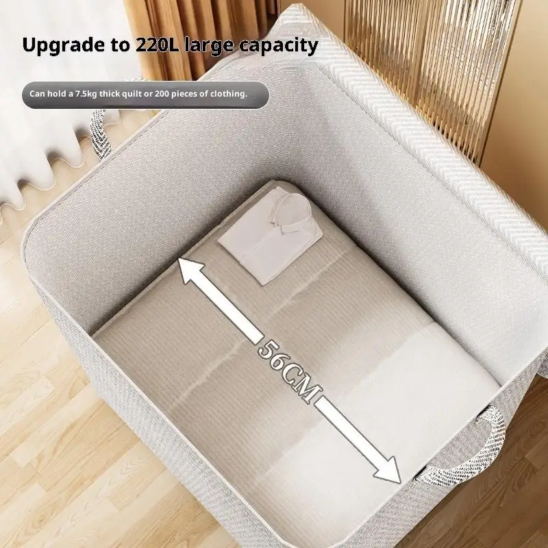 220L Large Capacity Foldable Clothes Storage Box with Cover Big Size Baby Laundry Organizer Basket Home Wardrobe Nursery Storage
