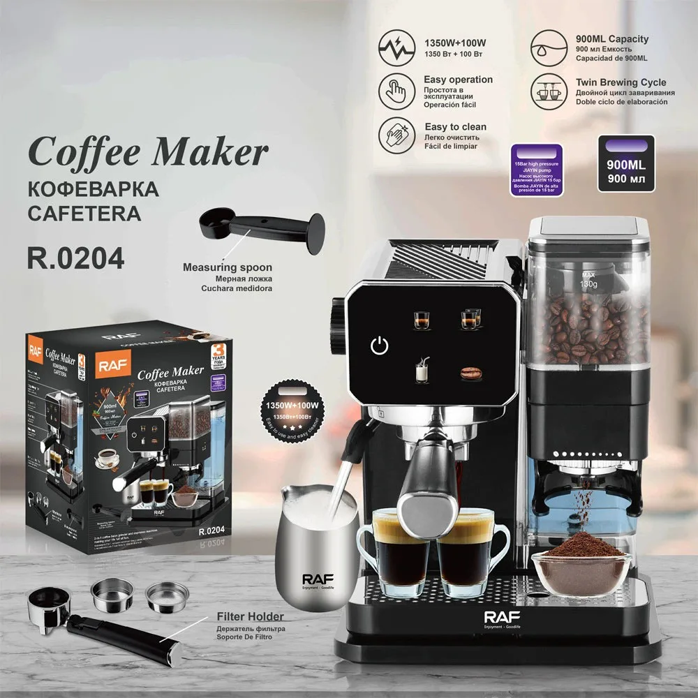 220V-240V Semi-automatic Coffee Machine 15 Bar With Grinding Function Hot And Cold Extraction Milk Foam Frothing Coffee Maker