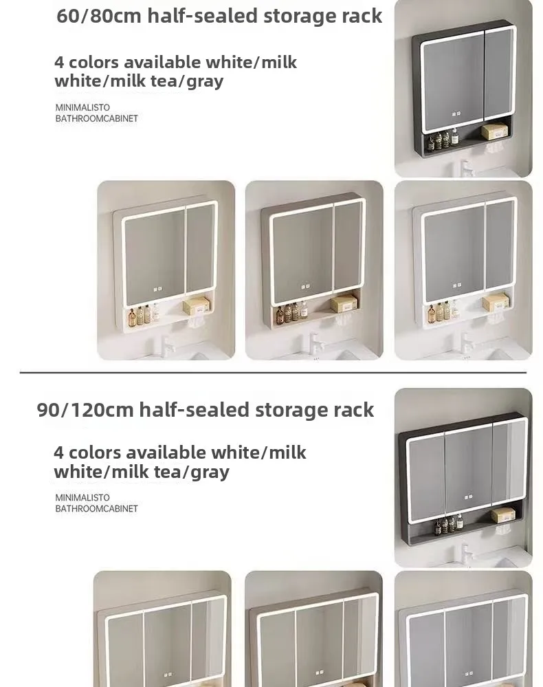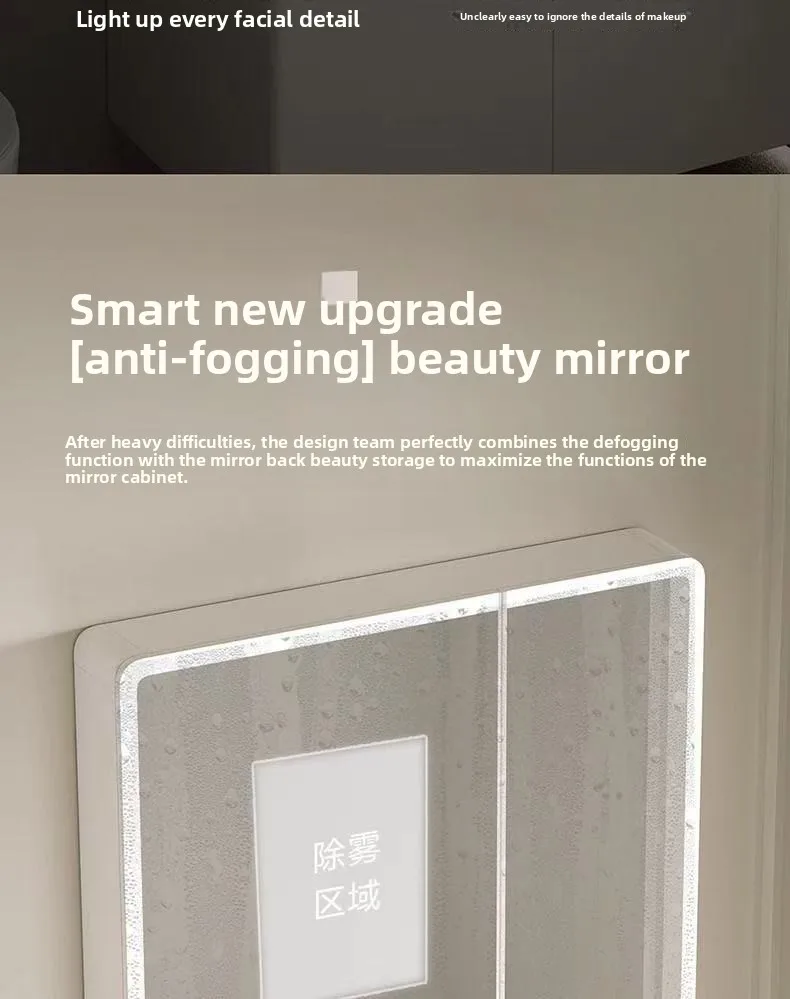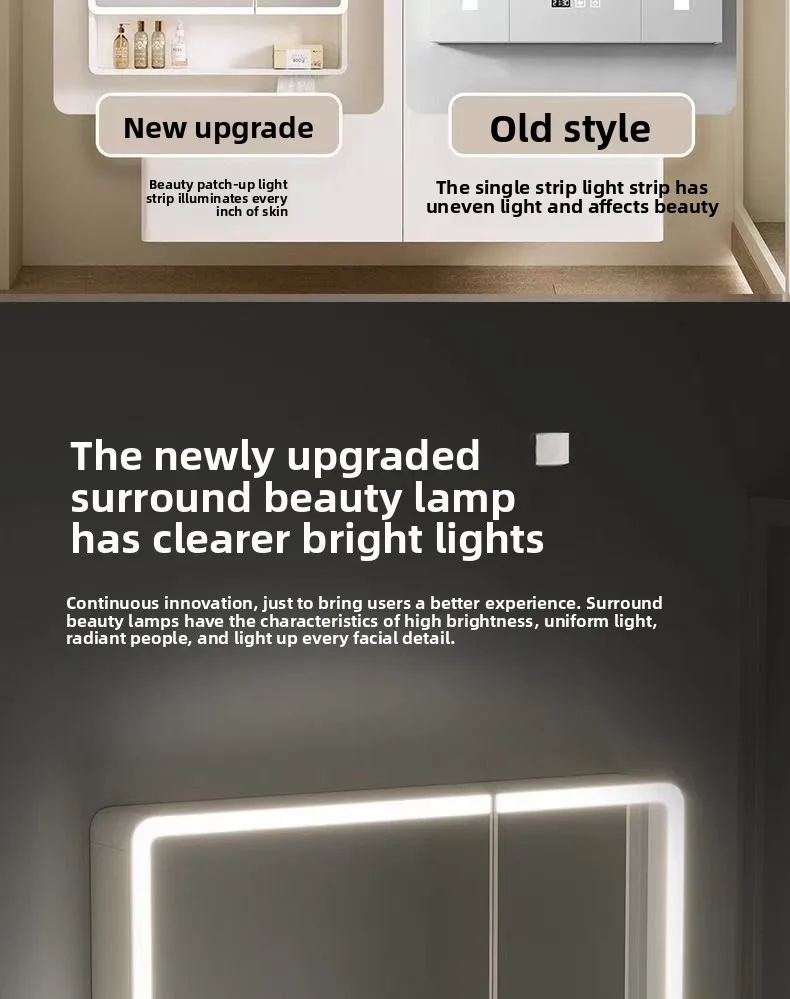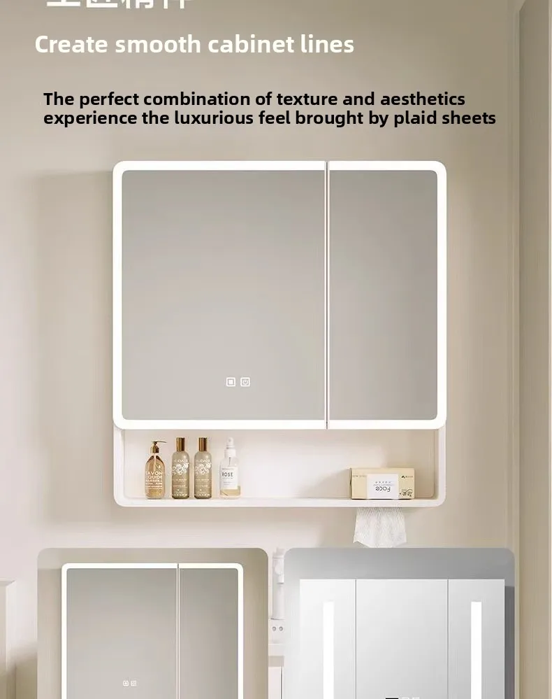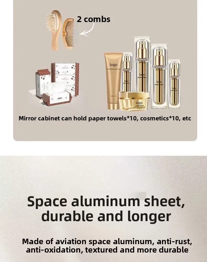 27 * 51 Inch Space Aluminum Bathroom Mirror Cabinet Storage Locker Mirror Table Smart Led Light Luminous with Tissue Hole Vanity