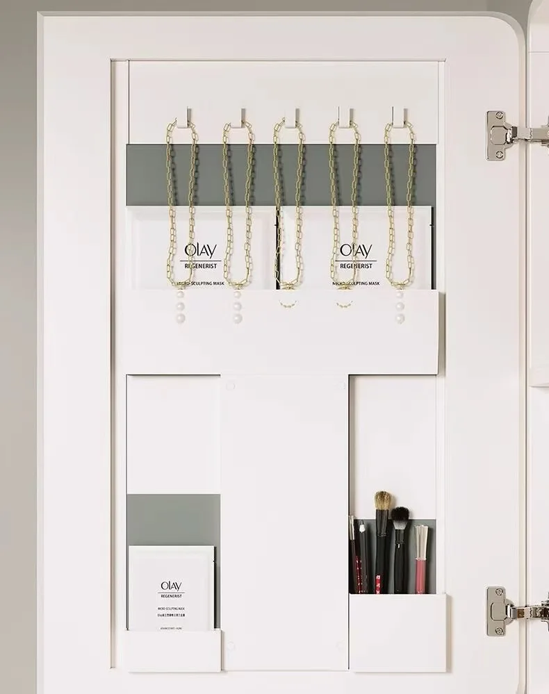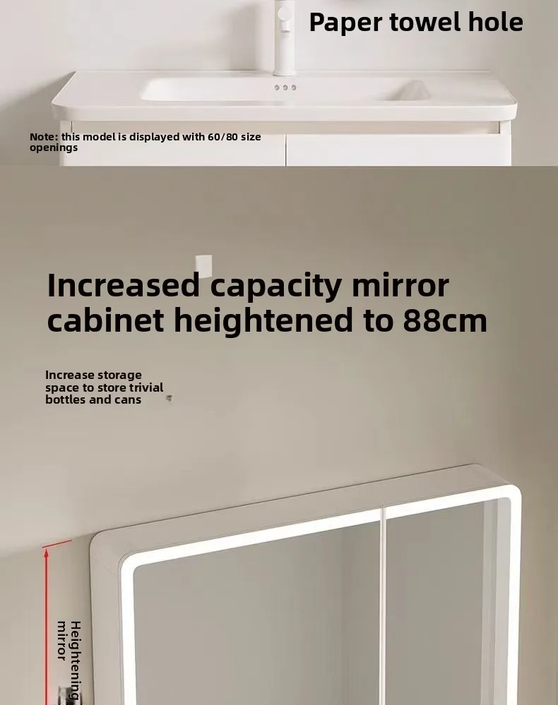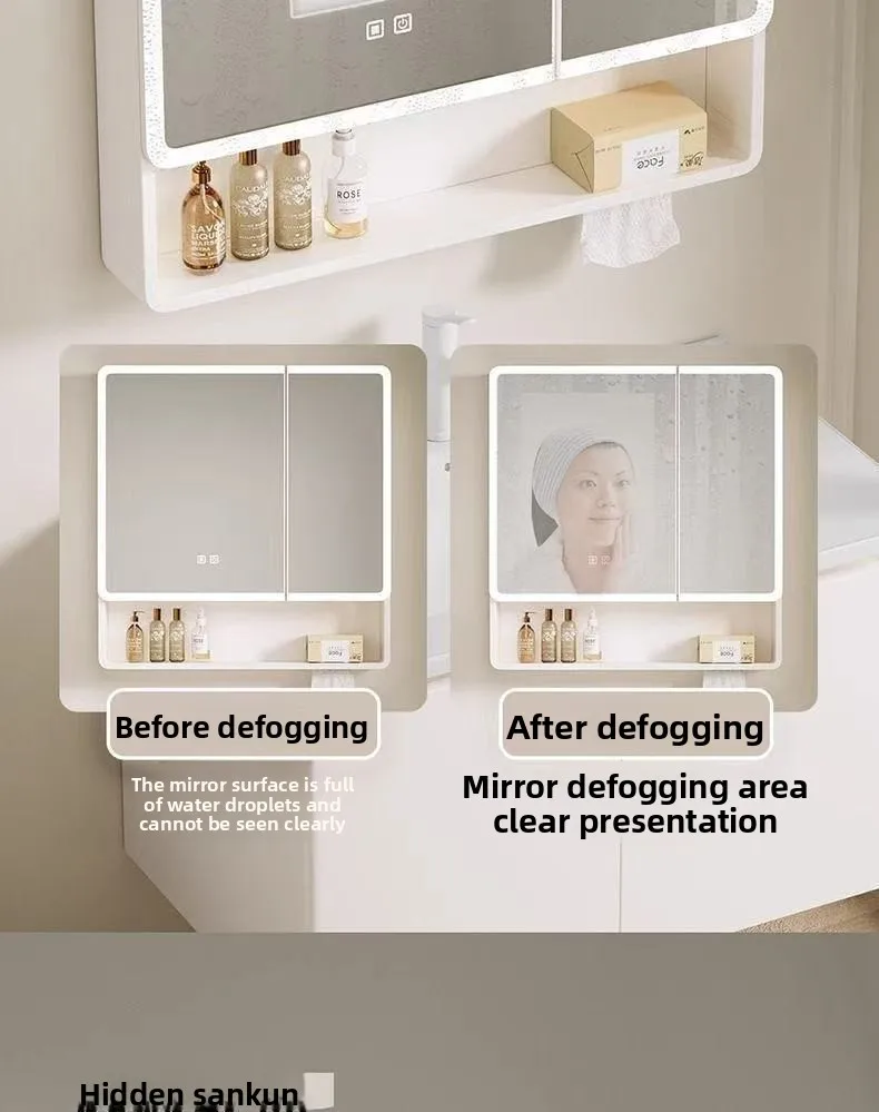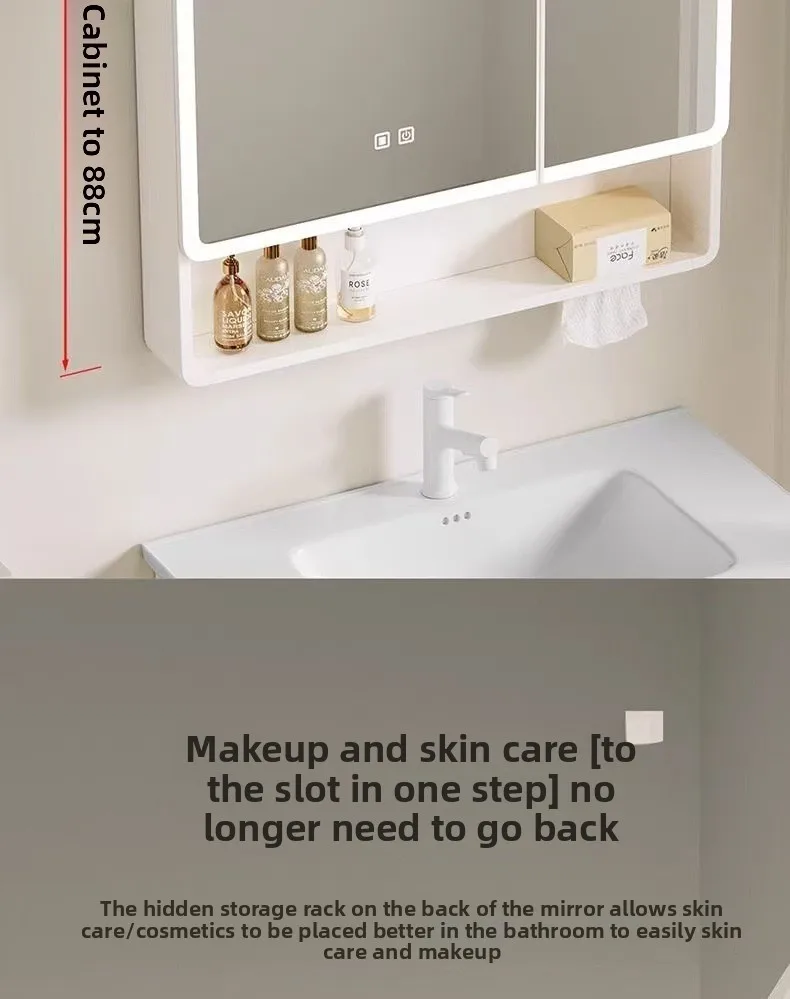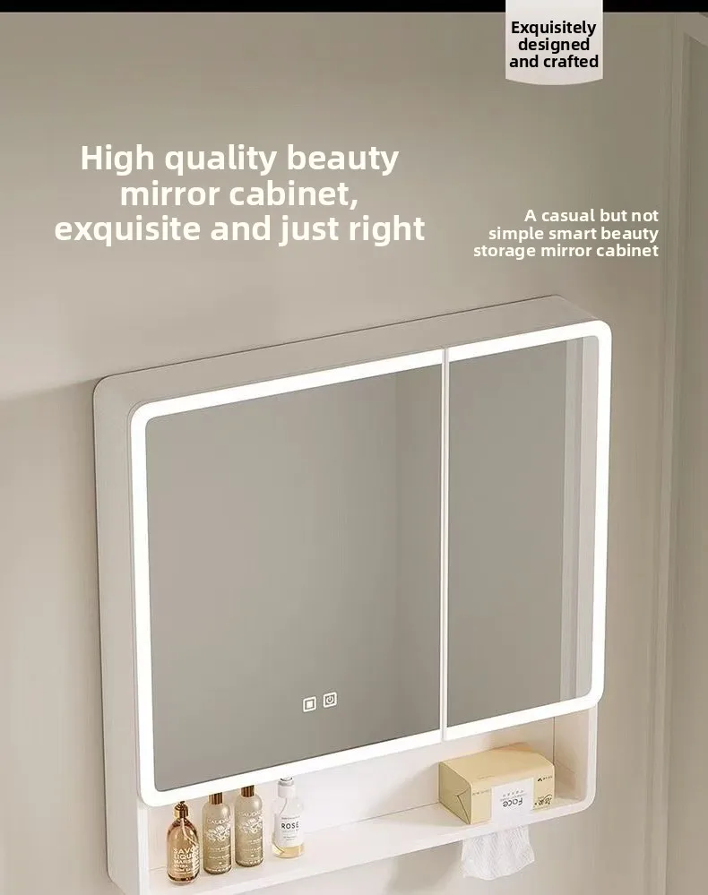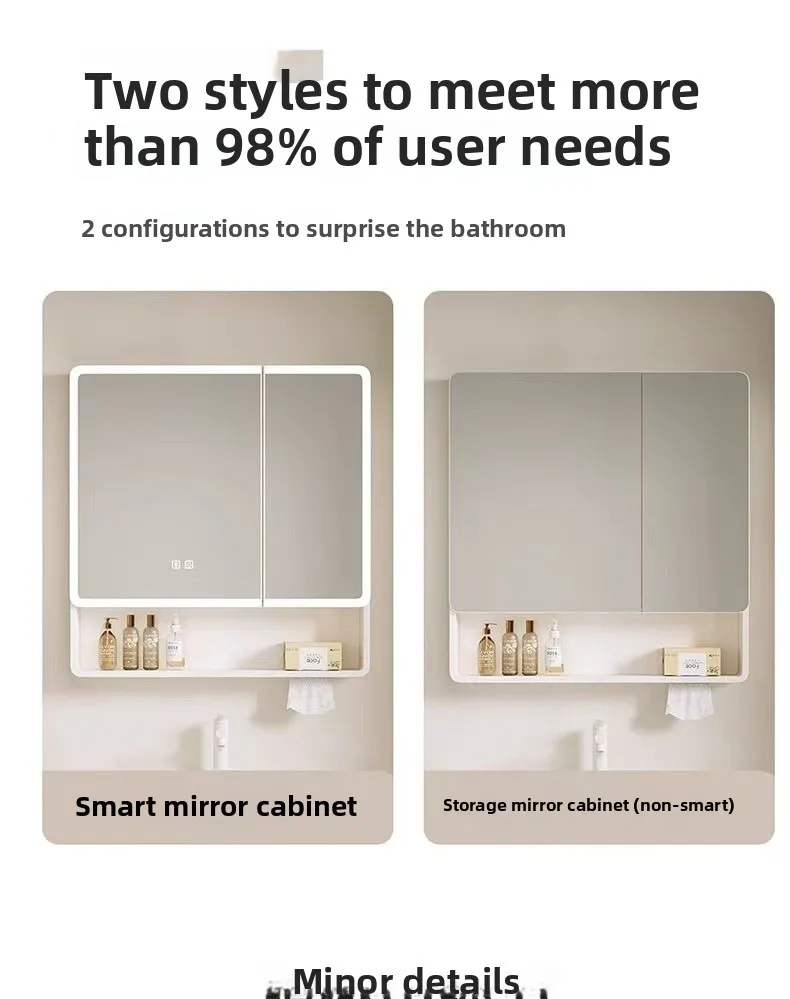 27 * 51 Inch Space Aluminum Bathroom Mirror Cabinet Storage Locker Mirror Table Smart Led Light Luminous with Tissue Hole Vanity