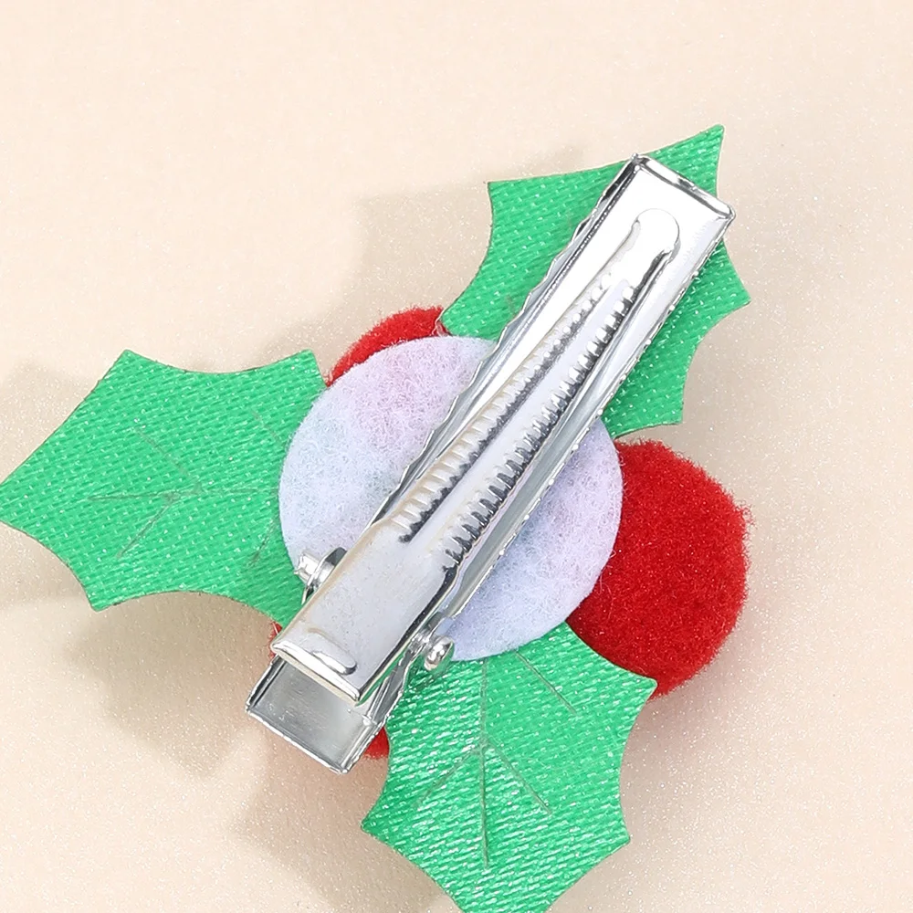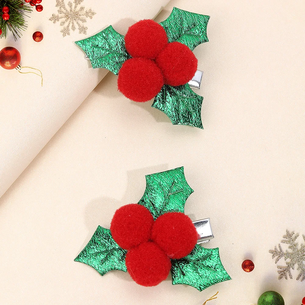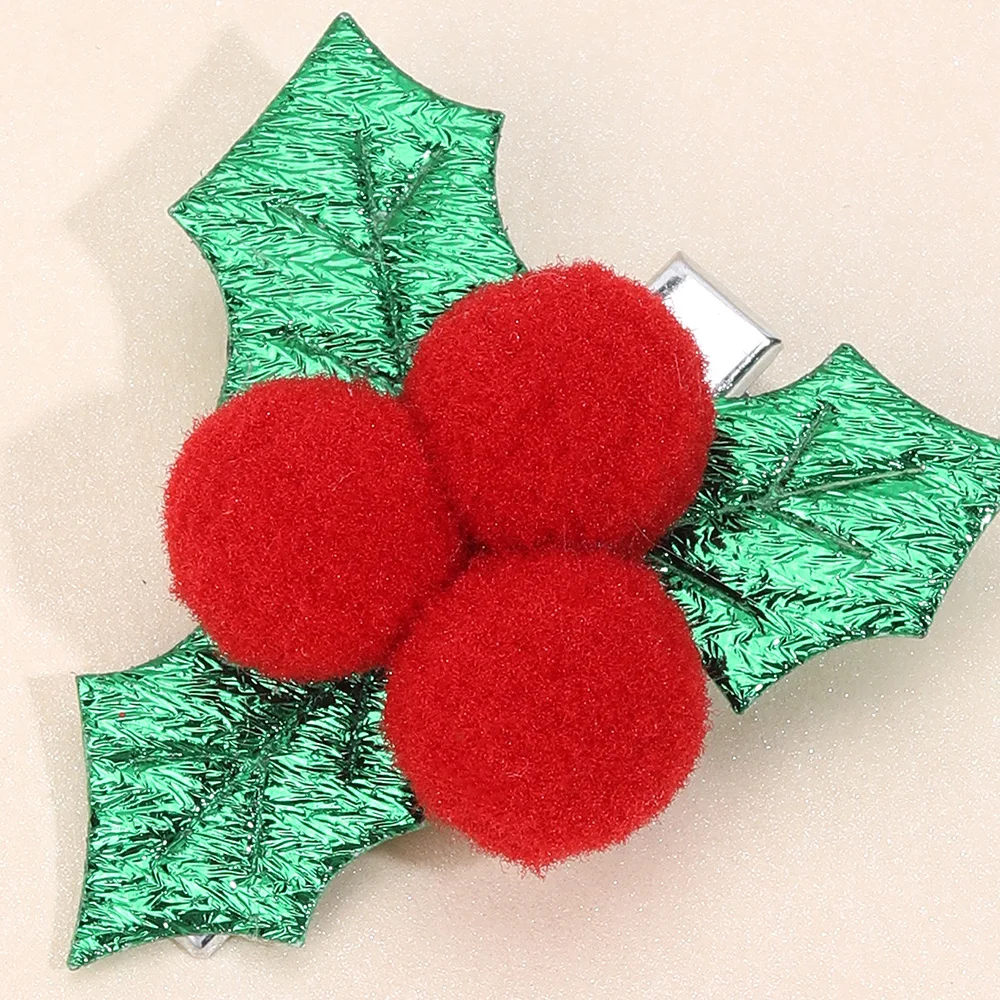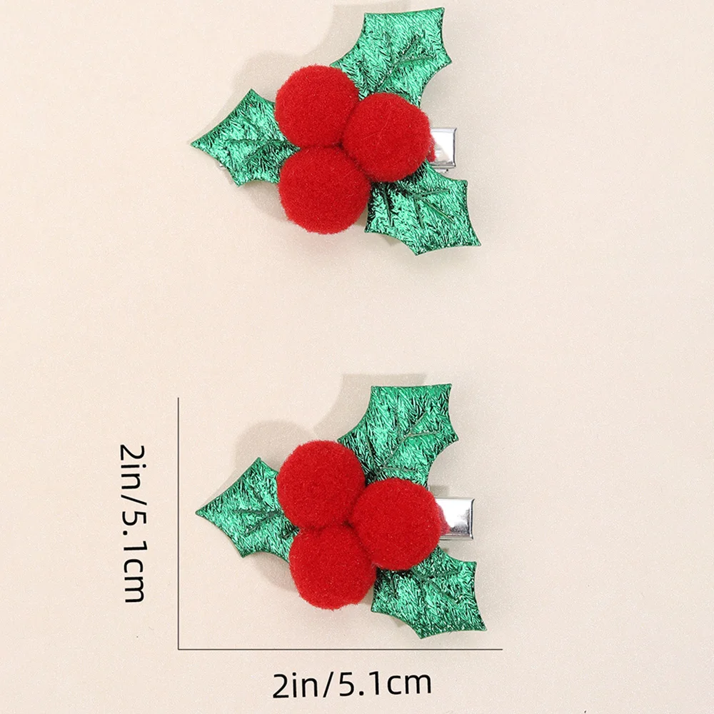 2Pcs Cute Christmas Holly Hair Clips Glitter Holly Leaf With Red Pom-Poms Hairpins For Girls Fall/Winter Xmas Party Accessories