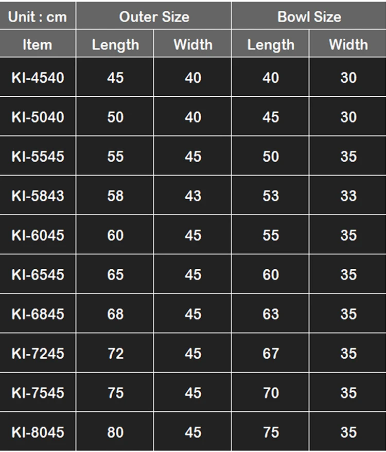 - Bowl Shape: Rectangular