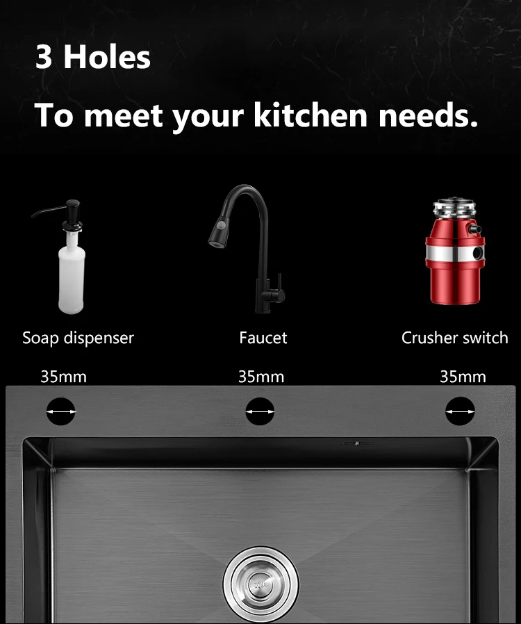 The kitchen sink sold by Hankii can be equipped with a conventional 114 mmdiameterGarbage disposal on the market