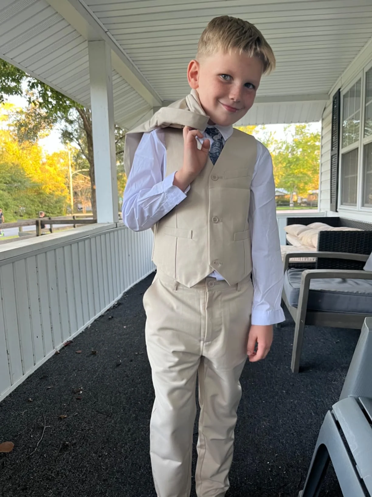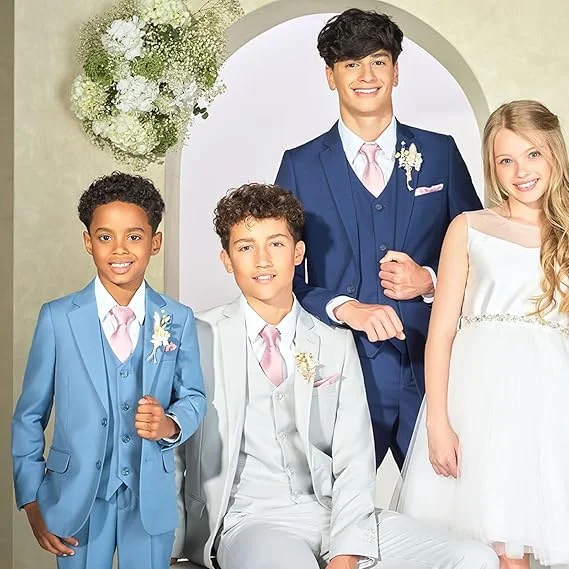 3 Pieces Boys Suit Slim Fit Kids Suit Jacket Formal Wedding Outfit Blazer Vest Pants Set
