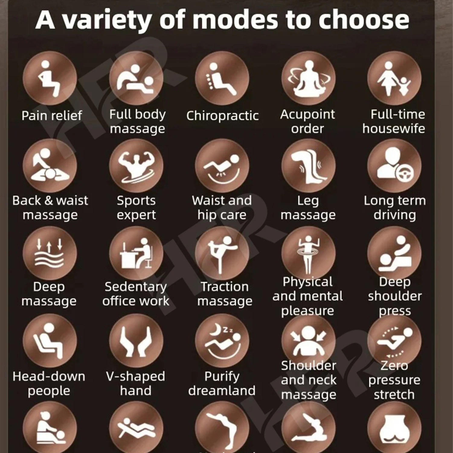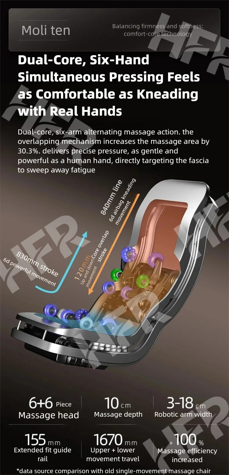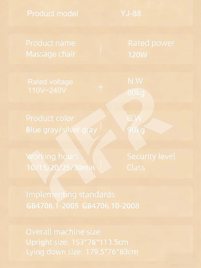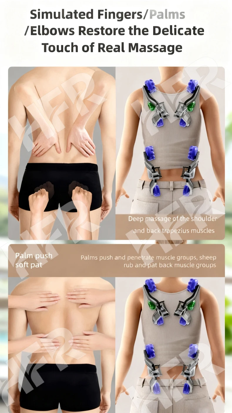 • Function: Full back segmented manipulator walking, kneading and rhythmic massage