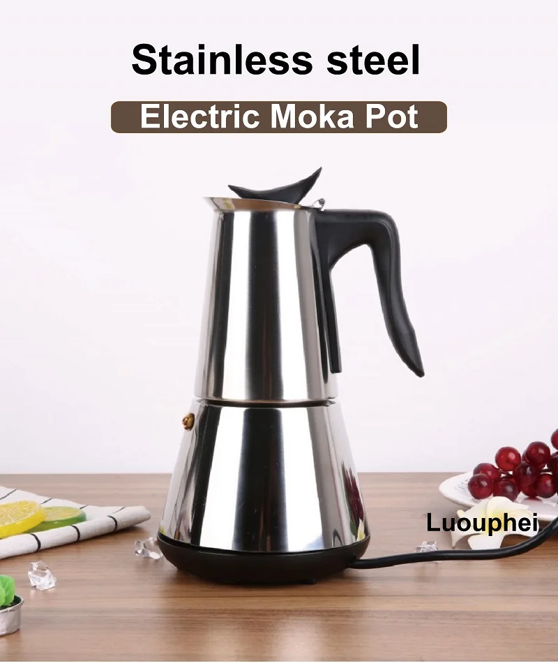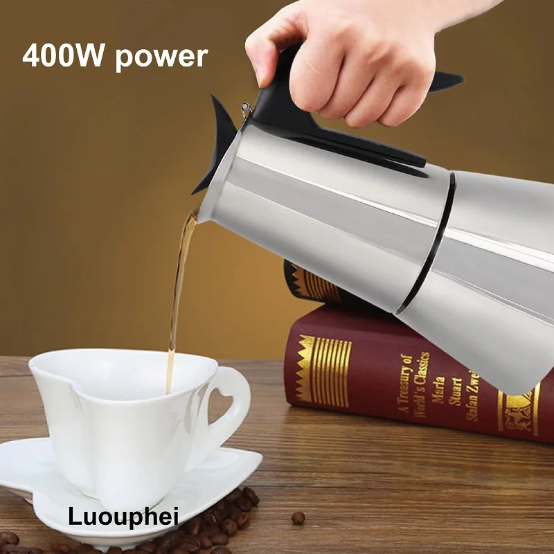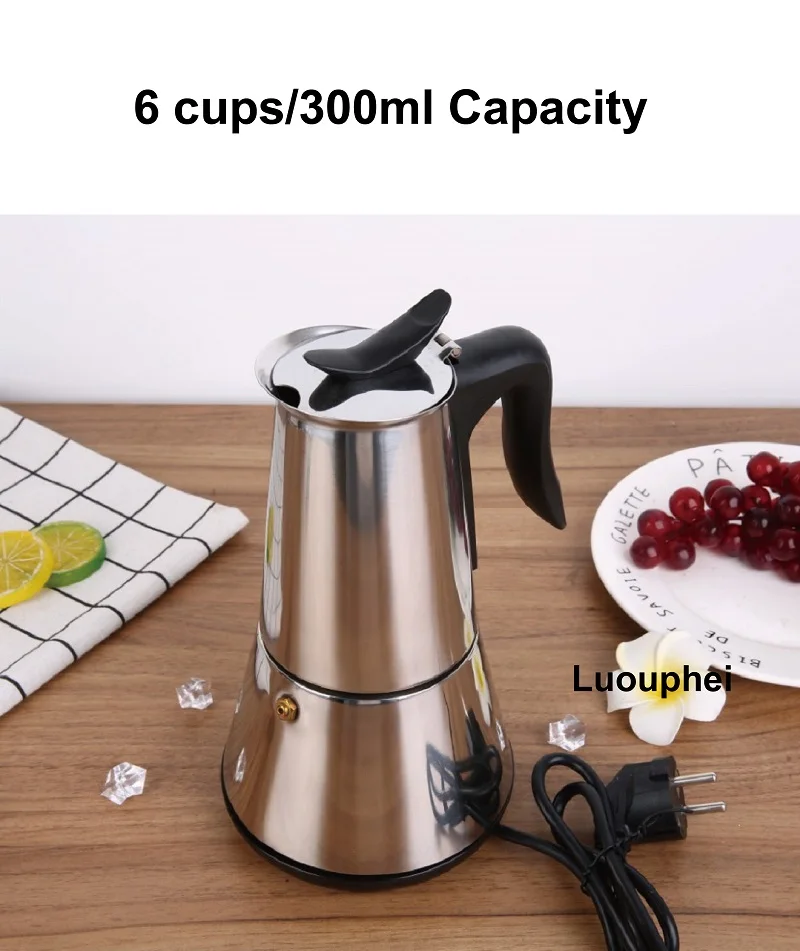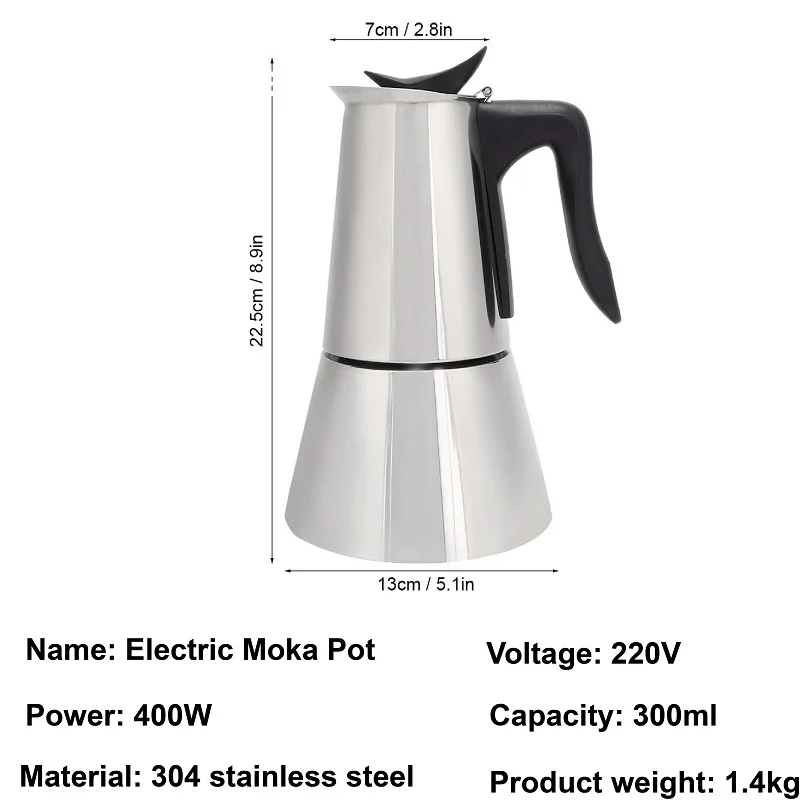 300ml Electric Coffee Maker 304 Stainless Steel Mocha Pot Electric Italian Coffee Maker Percolator Anti-dry Burning 110V/220V