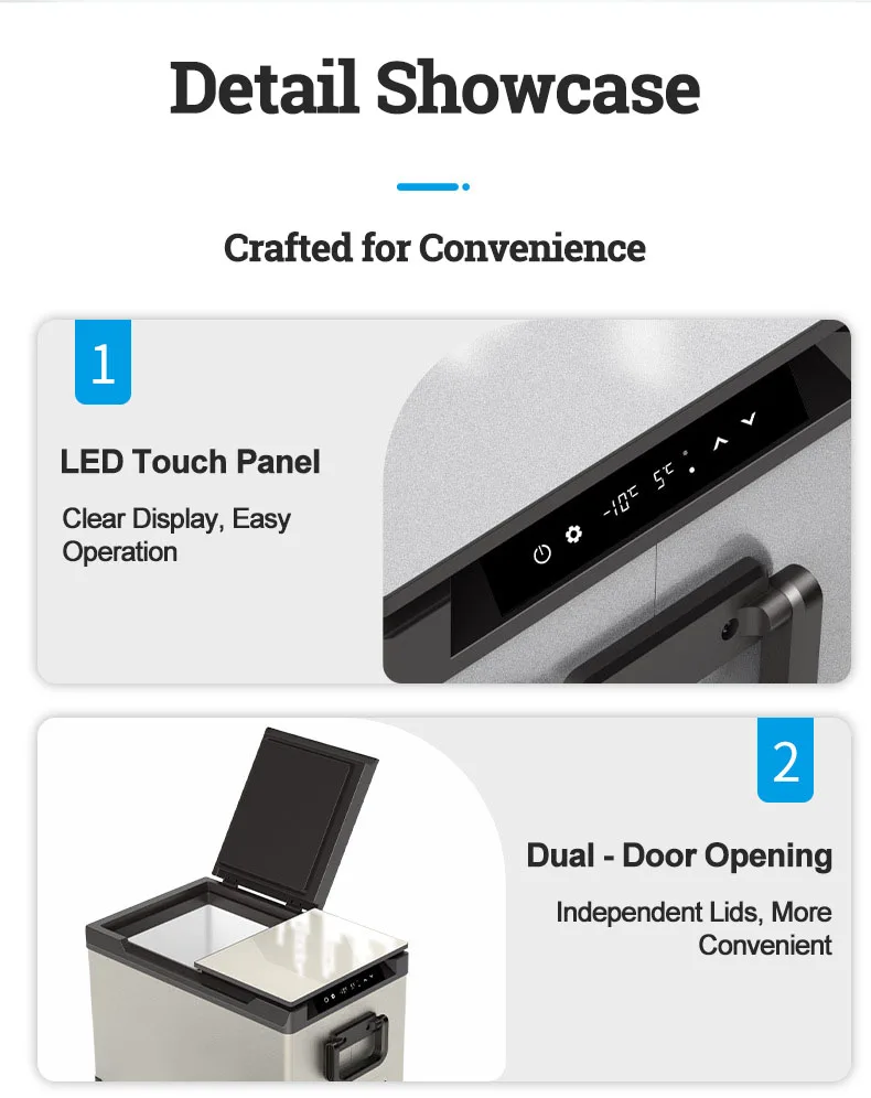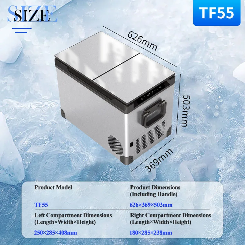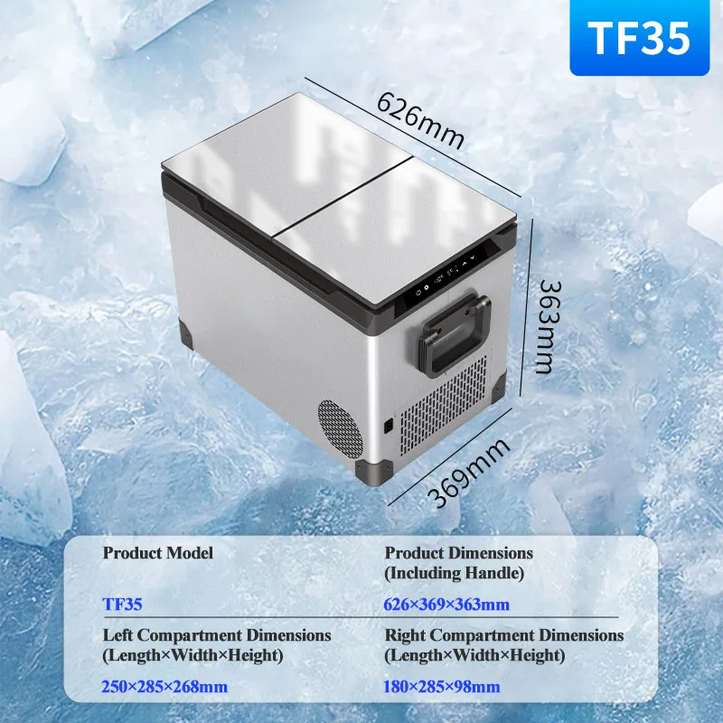 Be the first to review “35L 45L 55L Dual Zones Compressor Cooling Mini Freezer 12V 24V Mini Fridge Car Refrigerator with Handle”