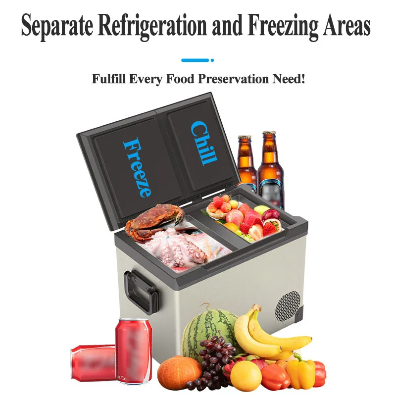 35L 45L 55L Dual Zones Compressor Cooling Mini Freezer 12V 24V Mini Fridge Car Refrigerator with Handle