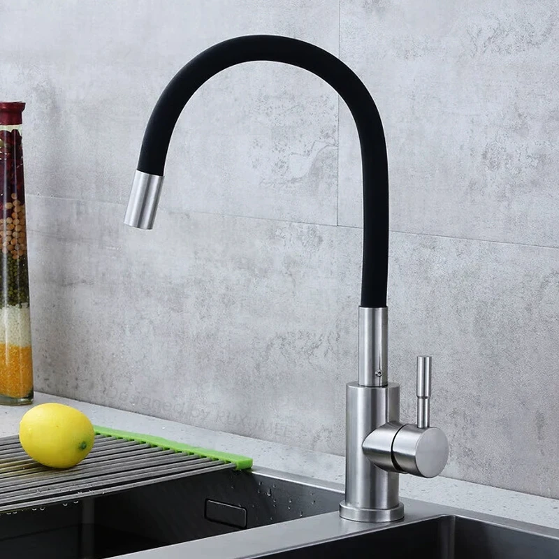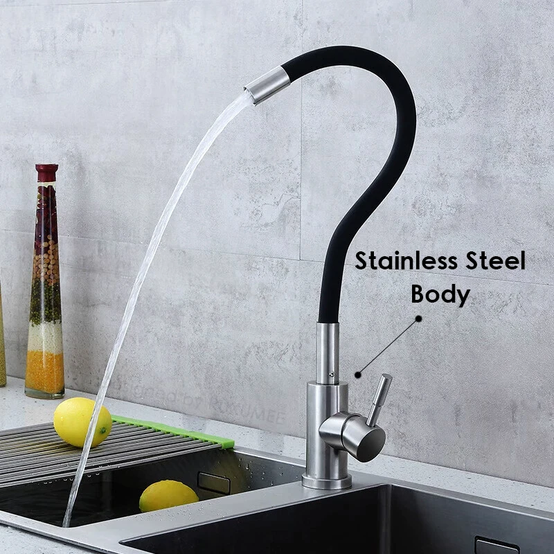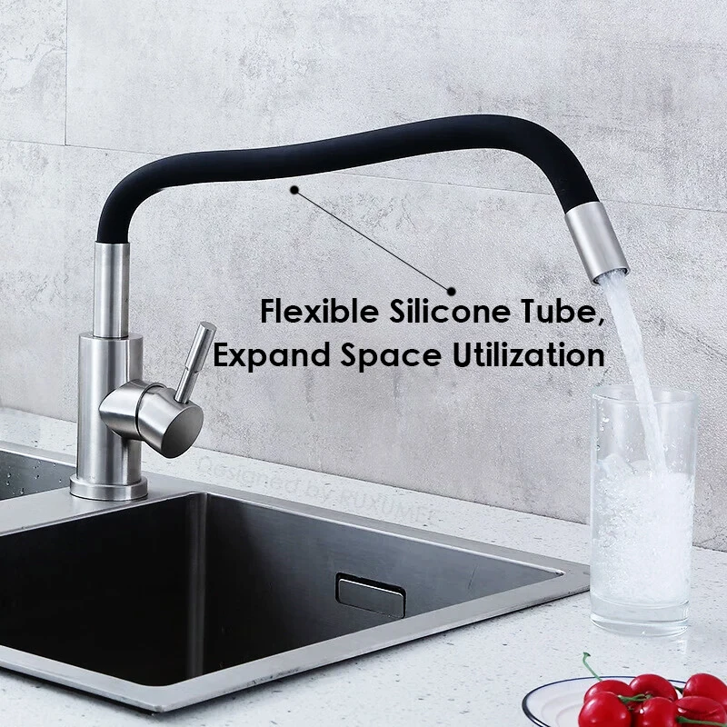 360 Rotating Flexible Stainless Steel Kitchen Faucet Single Mode Brushed Cold and Hot Water Mixer Tap Torneira Deck Mounted
